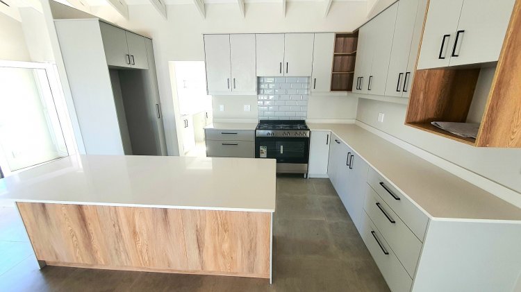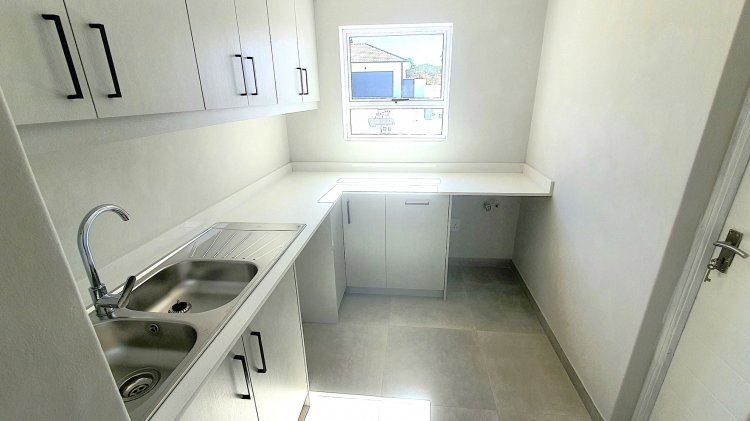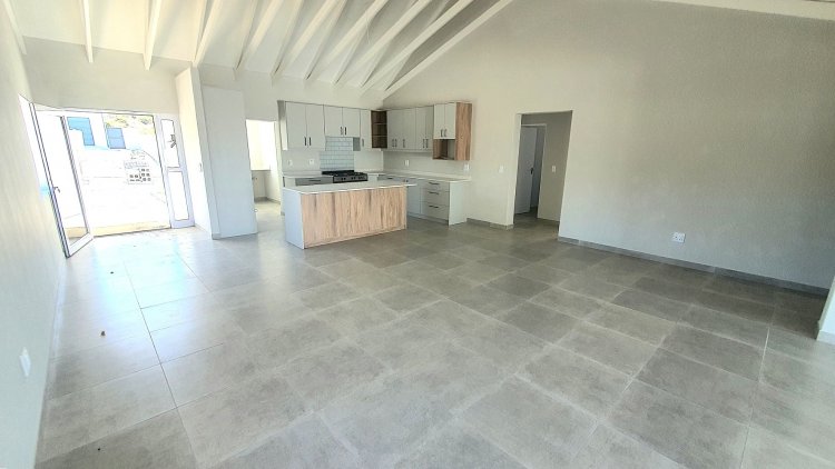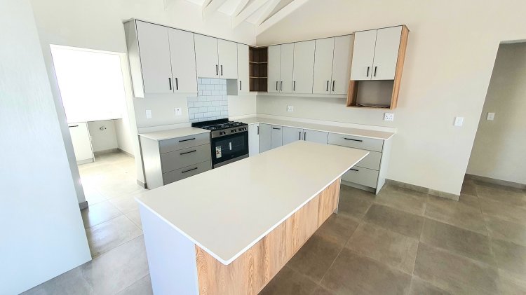 As you enter the home, you are greeted by an expansive open-plan high-beam ceiling living area. This luxurious yet homely space is filled with stylish modern features, including sleek cabinetry, high-end finishes and lighting, ensuring comfort and elegance. The kitchen is well-equipped with ample cupboard space, a gas hob and oven, perfect for any cooking enthusiast. Additionally, a scullery provides convenient storage with direct access to the automated double garage, further enhancing the home’s practical layout.