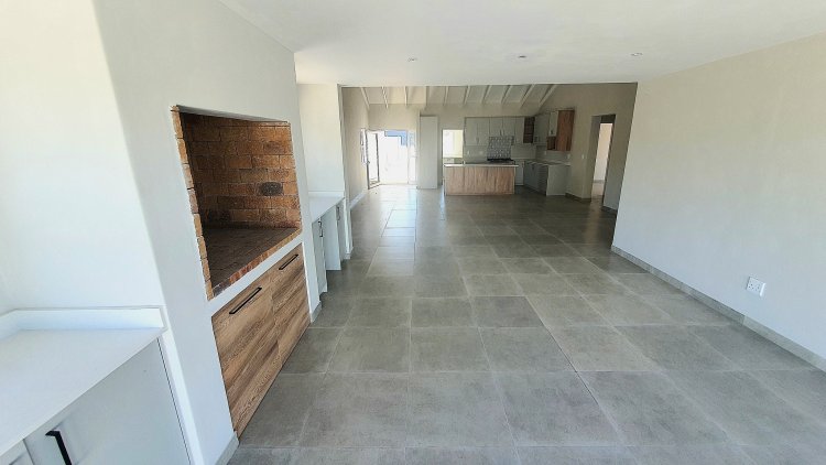 Open plan entertainment area with Built-in-Braai / fireplace