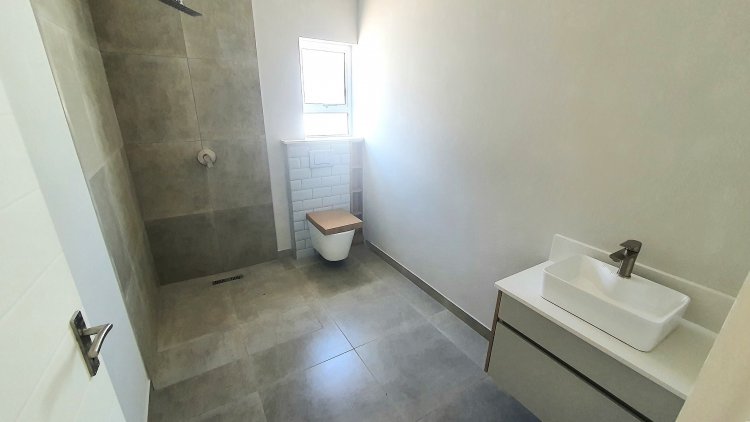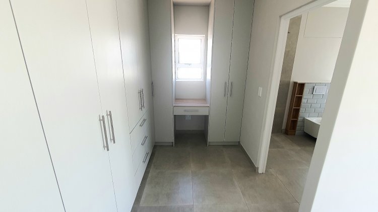The master suite includes a beautifully designed en-suite bathroom with premium fittings, including a double basin creating a serene and luxurious experience. The two additional bedrooms offer built-in cupboards and are serviced by a family bathroom.