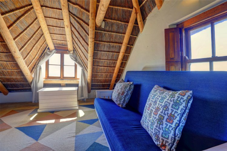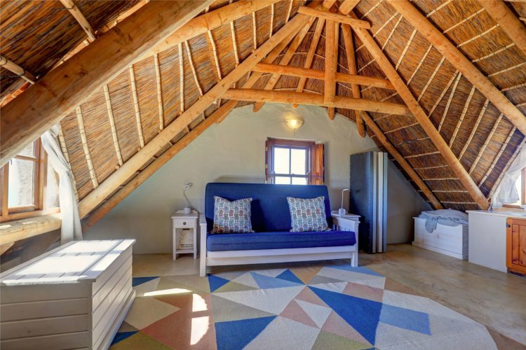 The main bedroom on the ground level is a peaceful retreat with an en-suite bathroom and calming garden views. Upstairs, an airy loft divides into two spaces: a bedroom with an en-suite on one side and a versatile open area that can serve as a third bedroom, study, or reading nook.