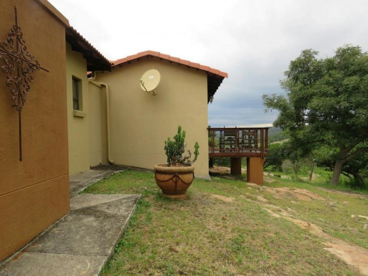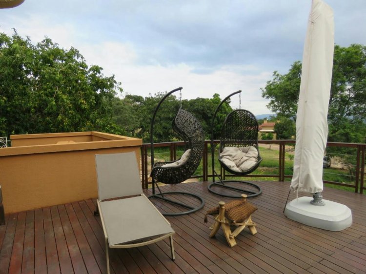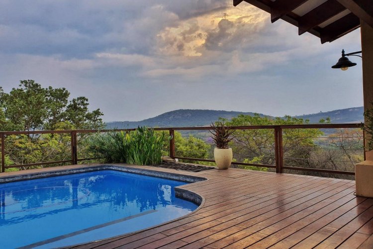 Exceptional property with modern finishes and amazing views. Stylish entrance, open flowing living area with double volume ceilings and gas fireplace leading onto a large covered wooden deck with sparkling pool offering exquisite views of the bush. Relax with a glass of wine and watching the sunset, bird life and wild ranging like giraffes, zebras, kudu and impala. generous size of 3 bedrooms, the main bedroom ensuite with double vanity, double shower and bath. Lovely deck opens up from the main bedroom offering untouched Lowveld lush and most amazing views all around. Stunning kitchen with granite tops, gas stove and electric oven.