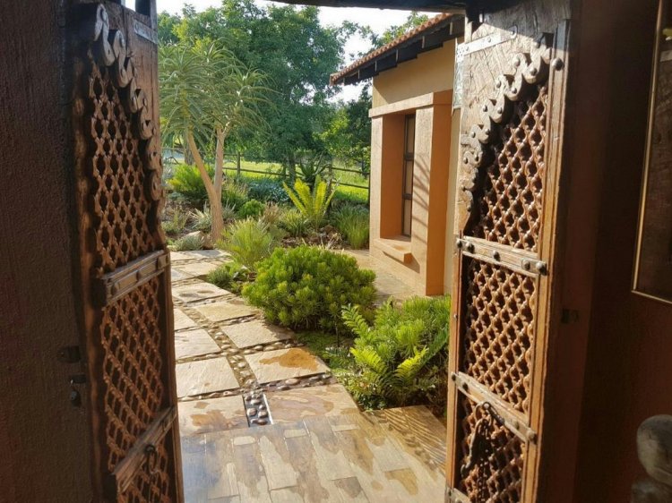 Trellidoors, top quality blinds on windows and doors, outside beams for extra security, alarm system. 24 hours security with electric fence around the Estate (259 hectares), guard, automatic gates. There are 2 automatic garages with extra little storage space. The Estate is offering piece of mind, tranquility and relaxation. You can do cycling, running, walking and fishing or picnic around the 3 existing dams.