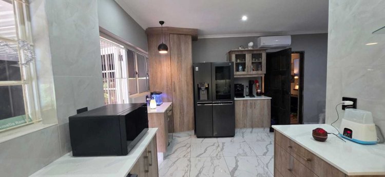 Step into the home where modern convenience meets elegant design. Imagine unwinding in a spacious living area with timeless laminate floor's flowing effortlessly throughout the home. Adorned by 2 bedroom's that come complete with built-in-cupboard's and cooling fan's, enhanced with voice activating lighting, while the 3rd bedroom could be used as an office/study, baby room or a dressing room. Whether for family meal's or casual brunch, this modern, newly done, fully fitted kitchen become's your culinary haven, complete with quartz counter top's, a gas oven and stove with extractor fan, and plumbing for a dishwasher. The modern feature's include, a black sink with a waterfall feature and snazzy tap with different setting's. The space extend's to a cosy breakfast nook, making every morning a delightful start.