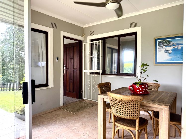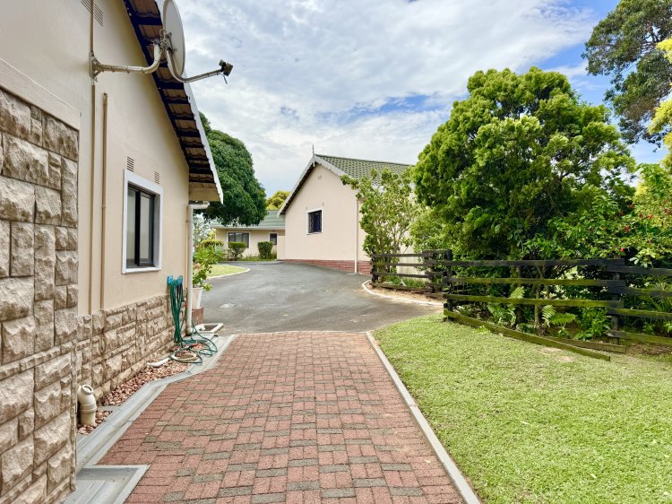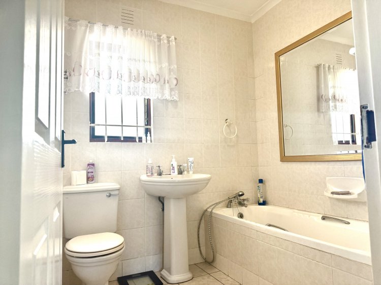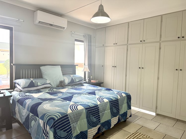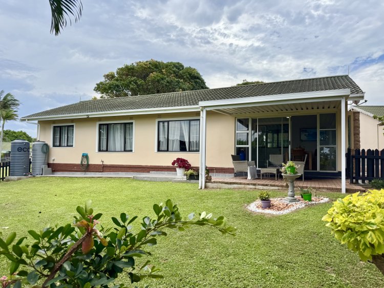 The thoughtfully designed layout offers excellent privacy, with two bedrooms positioned on the right-hand side of the home, serviced by their own bathroom featuring a bath. The main bedroom is situated on the opposite wing and includes an en-suite bathroom with a shower, as well as large built-in cupboards. Additional features include a plumbed-in backup water system, a geyser management system to help manage running costs, and a separate covered laundry area conveniently linking the garage to the home, providing comfortable, weather-protected access throughout all four seasons. This exceptional property is ideal for relaxed coastal living in a secure and desirable location.