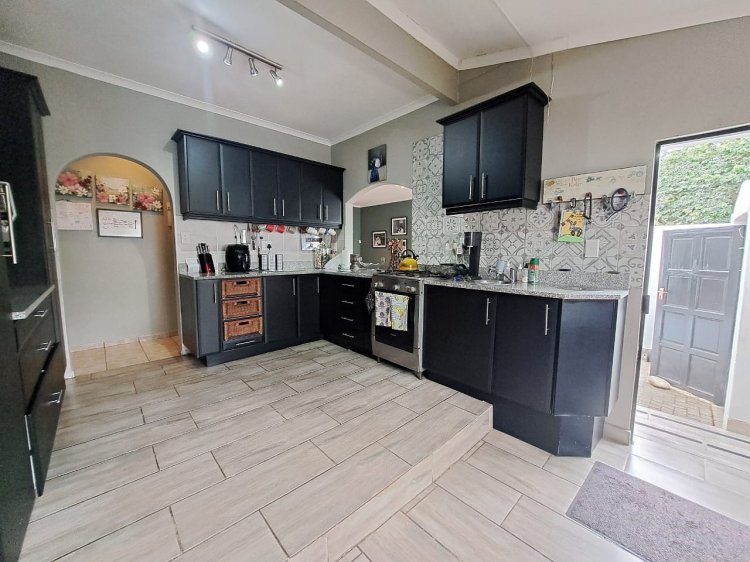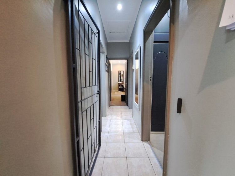 Down the passage, three bedrooms await, each fitted with built-in cupboards. The family bathroom includes a shower, while the main bedroom offers the luxury of a full en-suite.
