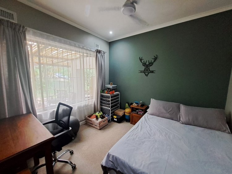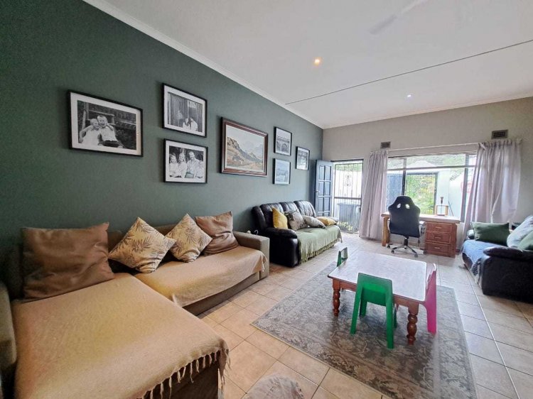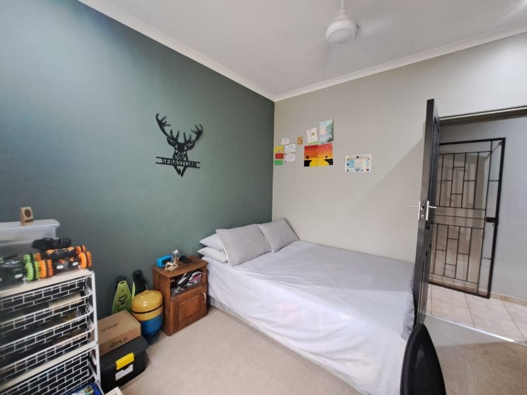 Parking is well catered for with a double garage and additional visitors’ bays. Two JoJo tanks add peace of mind during water shortages, ensuring the home runs smoothly even on those unpredictable days. A spacious storeroom adjacent to the garage provides the perfect spot to keep garden tools, outdoor gear, and all those extra household items neatly tucked away.