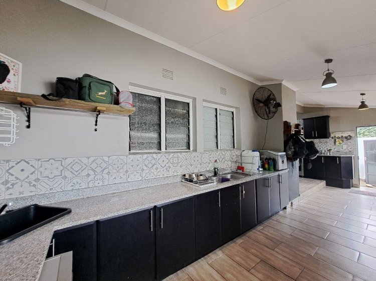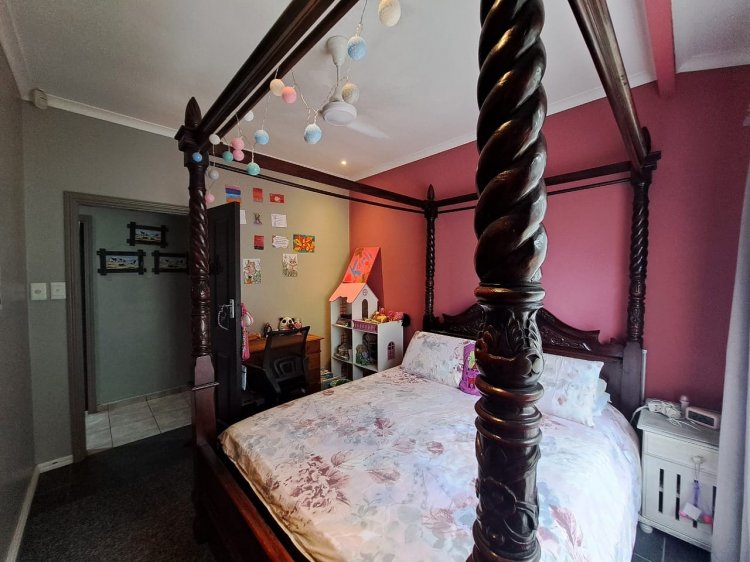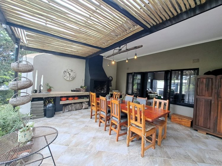 Step outside and you’ll find an impressive entertainment area complete with a built-in braai. The enclosed garden is just the right size for children to play and pets to roam freely. Flexibility is the key here—whether indoors or outdoors, the spaces are designed to be enjoyed and adapted to the needs of everyday family life.
