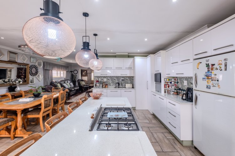 Step inside and you are immediately struck by the easy comfort of the living spaces and their seamless flow onto the entertainment patio. Split cycle air conditioning in the lounge and dining room ensures year round comfort. The kitchen is undeniably a standout feature, spacious, open plan, and beautifully appointed with quartz countertops, abundant cabinetry, a centre island, and a gas stove and oven. It is both functional and visually impressive.