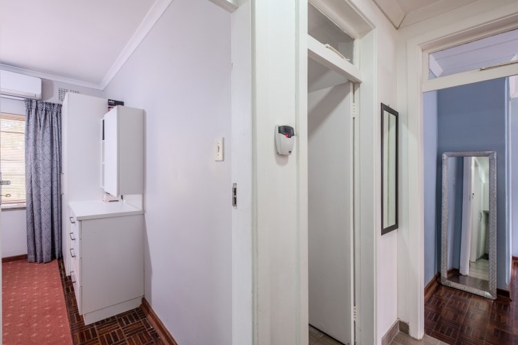 The bedroom wing comprises light filled, well proportioned rooms, all fitted with generous built in cupboards and split cycle air conditioners. The third bedroom has been thoughtfully opened to incorporate an additional area ideal for a study, or alternatively, it can be reconfigured to create a separate laundry room. The family bathroom is well-equipped with a bath, shower, basin, and toilet, while a separate guest loo adds further convenience. The master bedroom is spacious and tastefully finished, featuring excellent cabinetry and a modern en suite bathroom with an extra length shower, basin, and toilet.