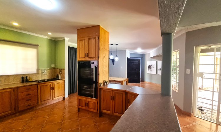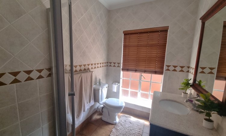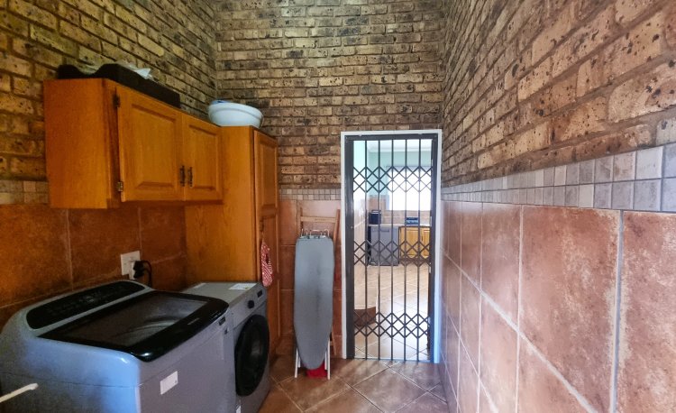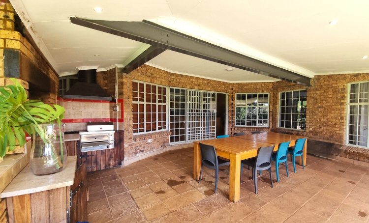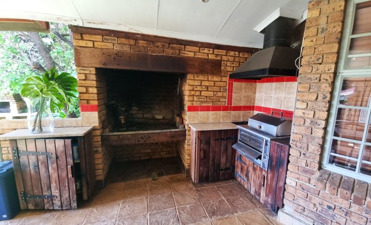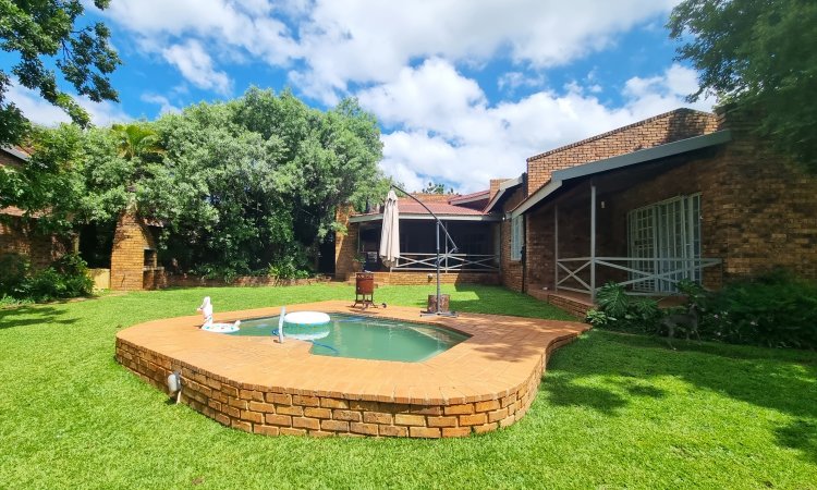 Property Features: • Ready-to-move-in 4 bedrooms, 2 bathrooms (main en-suite) • Open-plan kitchen with scullery, lounge, dining area, study • 3 automated garages + carport with ample parking • Steel carport for caravan • Two entrances from the street, for convenience • Domestic quarters • Indoor and outdoor braai areas • Heated swimming pool • Alarm and beams system • Irrigation system • Stand size: 1125 m²