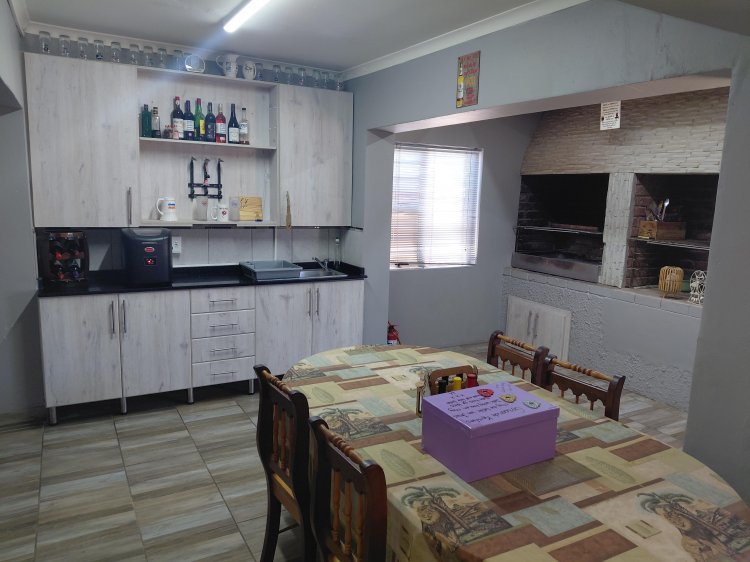 Bedrooms & Bathrooms: • Bedroom 1: Ample built-in cupboards, laminated flooring, air conditioner • Bedroom 2: Built-in cupboards, laminated flooring, air conditioner • Main Bedroom: Ample built-in cupboards, laminated flooring, air conditioner • Family Bathroom: Shower, basin, and toilet • Fourth Bedroom / Flatlet: Accessed from the braai area, tiled, with en-suite bathroom (bath, basin, toilet). Ideal as a flatlet or guest suite.