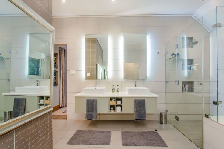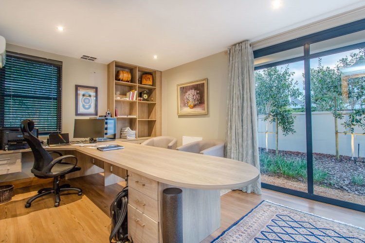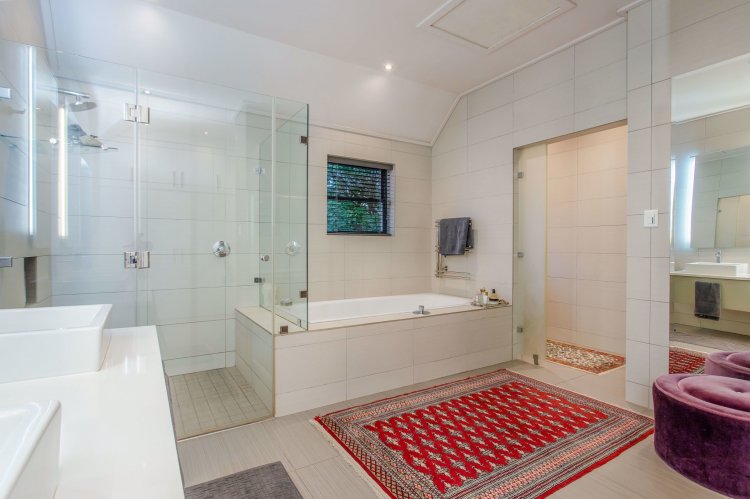 Tucked away towards the end of a quiet cul-de-sac, the home enjoys peace and privacy, with thoughtful details throughout — underfloor heating in bathrooms, air conditioning, a three-car garage, and a battery inverter for uninterrupted comfort.
