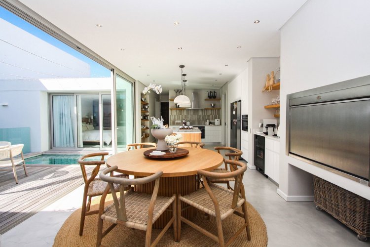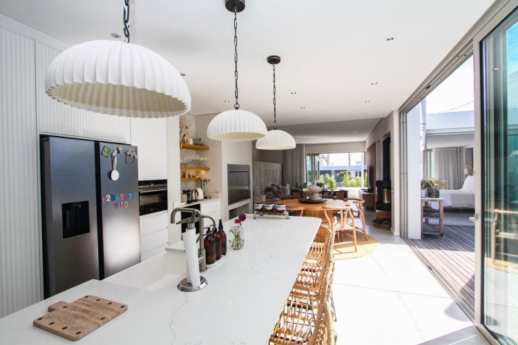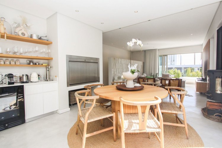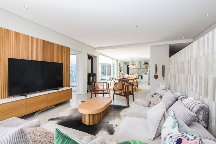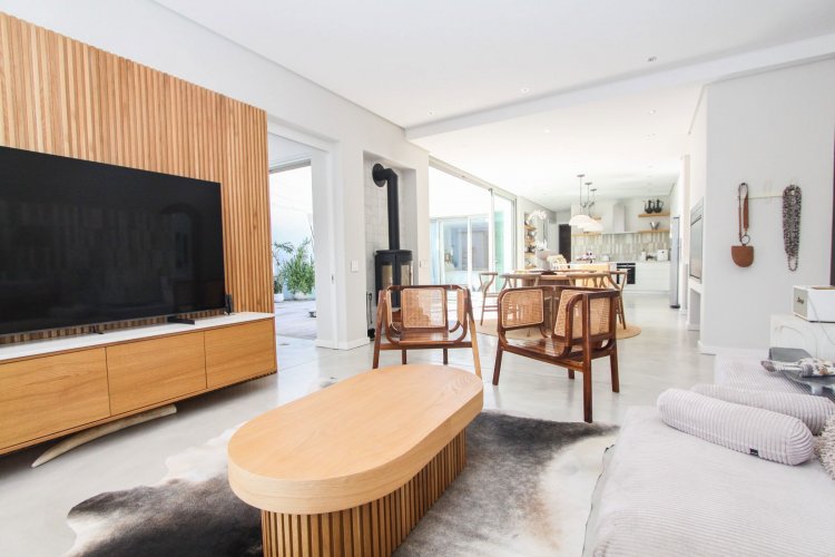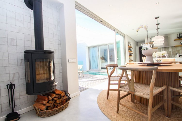 It is finished off with floating cement floors, IPE wooden decking, double glazed glass doors and windows, 2 heat pumps for the geyser and pool, 5 KVA inverter system, an indoor stainless steel fireplace and a Morsoe Scandinavian combustion fireplace.