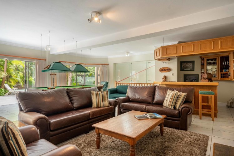 An impressive entertainment and wellness wing includes a gym, squash court, steam room and jacuzzi, along with multiple leisure spaces, a games room, pub lounge with fireplace, and an open patio with built-in braai, ideal for entertaining. Accommodation comprises five spacious bedrooms with beautifully appointed bathrooms. A private one-bedroom cottage offers excellent versatility for guests, extended family or rental income. Additional features include four garages, three undercover parking bays and secure visitor parking for up to 12 vehicles, two domestic rooms, 18-panel solar system, three-phase power, 12kVA inverter with lithium batteries, pumped and filtered water storage, fibre internet throughout, full perimeter fencing and an automated gate. Impeccably maintained and exceptionally private, this is a unique opportunity to enjoy luxury living so comprehensive you would never need to leave home! All contents of the house and cottage are negotiable. Contact us today to arrange a private viewing.