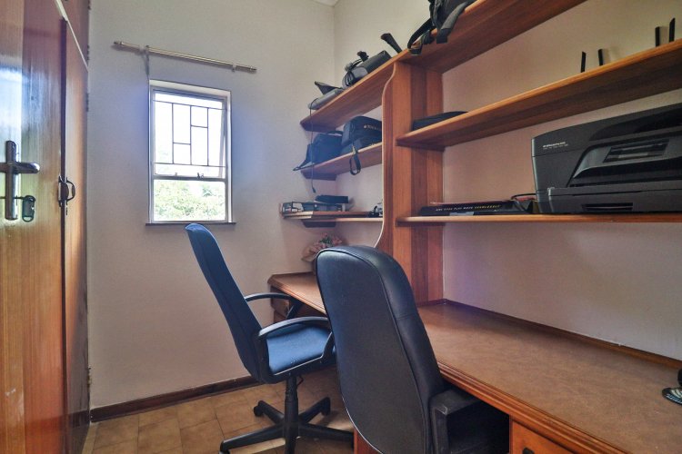 The oversized kitchen is designed with entertaining in mind and offers solid wooden built-in cupboards, a gas stove, eye-level oven, and expansive granite countertops. These flow seamlessly into a well-appointed scullery and separate laundry, ensuring both functionality and convenience.