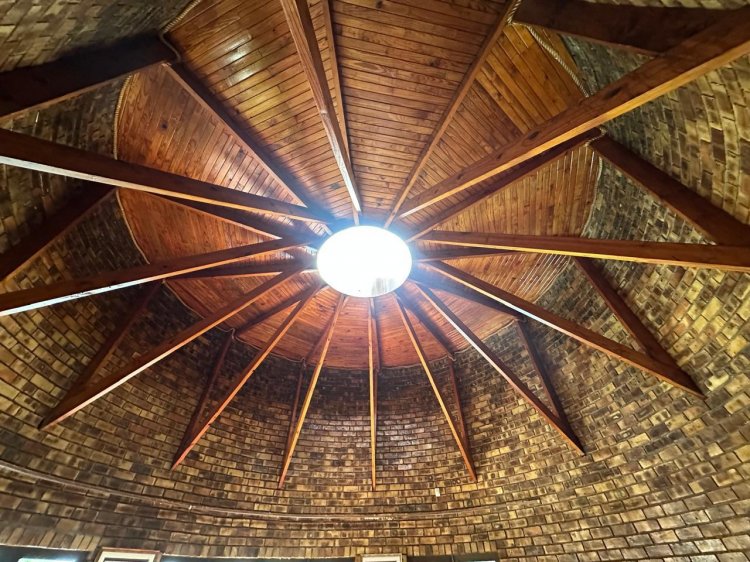 A second lounge with a unique round design adds architectural charm, featuring a striking roof structure that allows natural light to pour in through a central skylight, creating a bright and airy atmosphere.