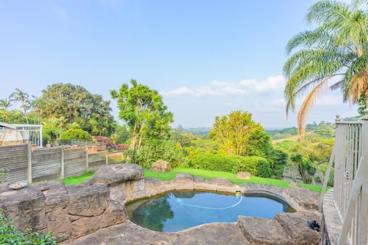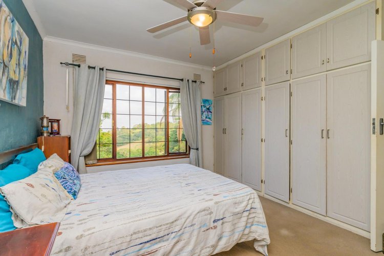 This inviting home features 4 carpeted bedrooms with built-in cupboards and ceiling fans, and 2 bathrooms, including a full en-suite. The spacious tiled lounge with air conditioning opens via stack-back doors to a covered entertainment area overlooking a rock pool and beautiful sea views. The kitchen includes ample built-in cupboards, granite tops, and a family breakfast nook. Off the kitchen is an undercover courtyard plumbed for appliances, plus a staff room and bathroom. Additional features include a double manual garage, ample parking, electronic gate, fully fenced garden, a Gemini hut with two rooms, and a solar geyser. This home has been loved and cared for by the same family for 24 years. Don't hesitate. Get in touch to book an exclusive viewing.