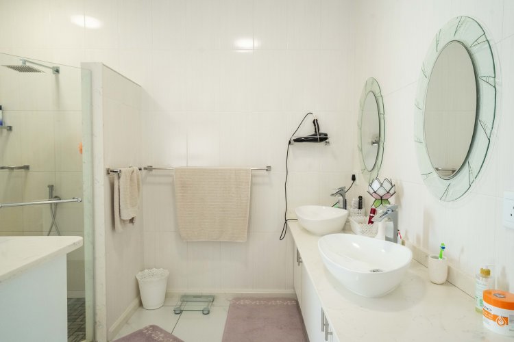 Designed with sustainability in mind, this home is supported by spare water tanks, offering peace of mind and practical living. The bedrooms are light, airy and generously proportioned, providing comfort and space for a large family. The bathrooms feel like gentle retreats – calm, tasteful and thoughtfully finished.