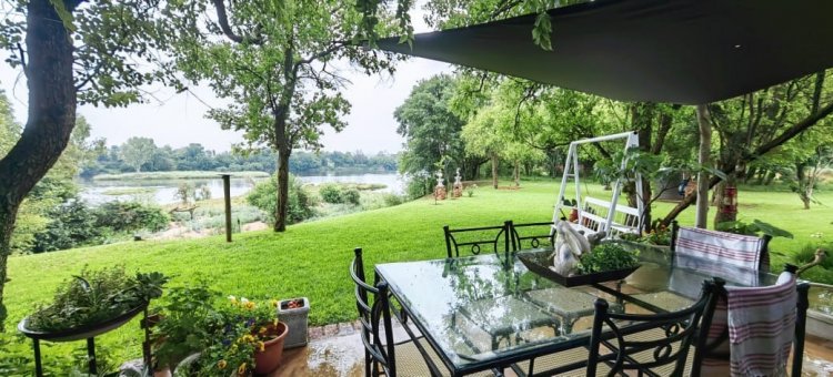 Outdoor living is equally impressive. A spacious patio with a built-in braai overlooks the greenery and flowing river, offering the perfect setting for lazy afternoons, sunsets, and wildlife sightings. Residents also enjoy direct access to river activities like fishing, canoeing, and swimming.