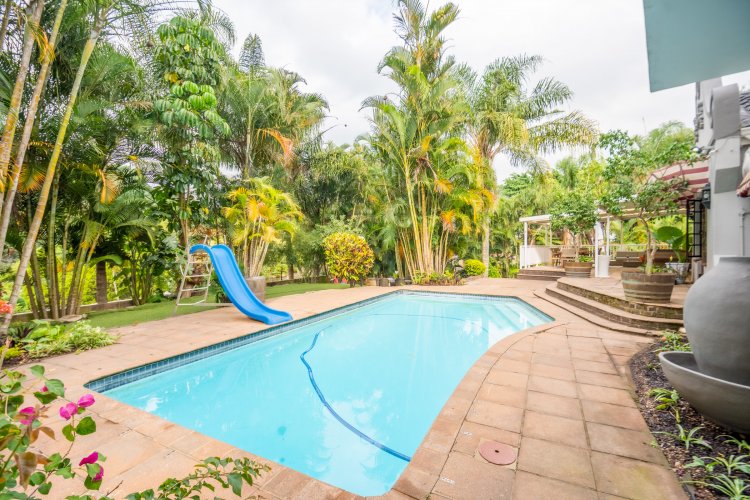 Harcourts Pulse presents a luxurious residence in Beverley Hills, Westville that offers an exclusive opportunity to experience luxurious living with a sustainable, eco-friendly twist. This stunning property features a practical floor plan ready to shape and serve the living pattern of the large active family, boasting 4 bedrooms, 2.5 bathrooms, and 4 automated garages. Inside, you'll find a spacious formal lounge with a fireplace, leading onto an expansive covered entertainment patio, overlooking the sparkling swimming pool and manicured landscaped gardens. A second lounge currently serving as a TV room provides a comfortable environment for everyday use.