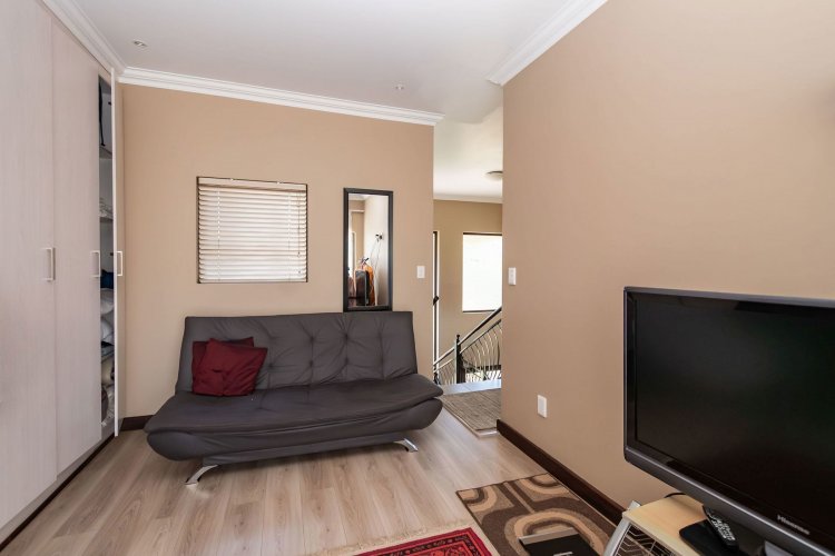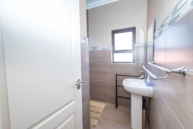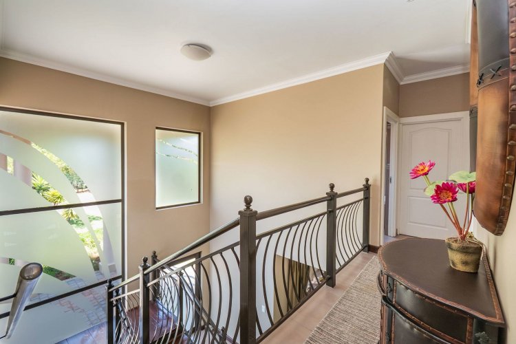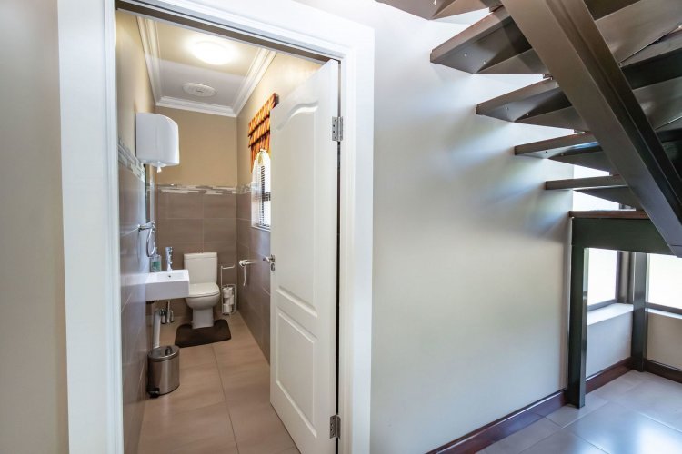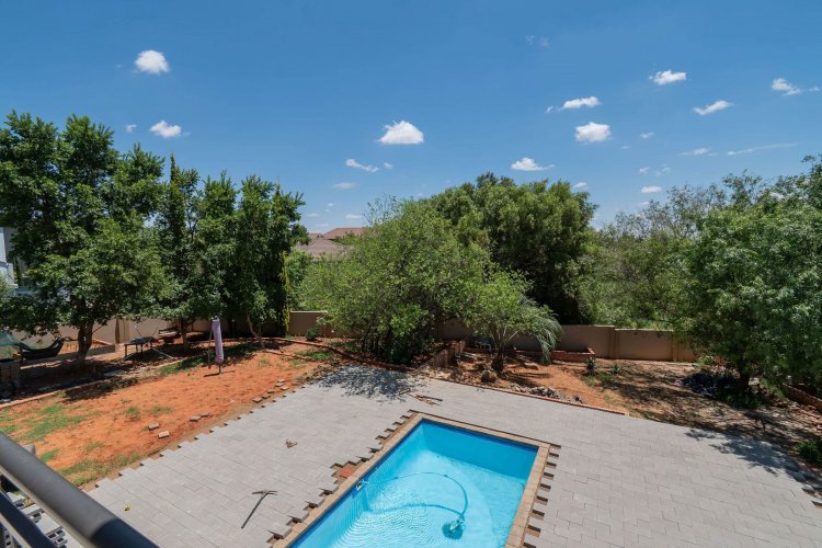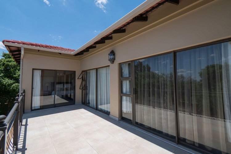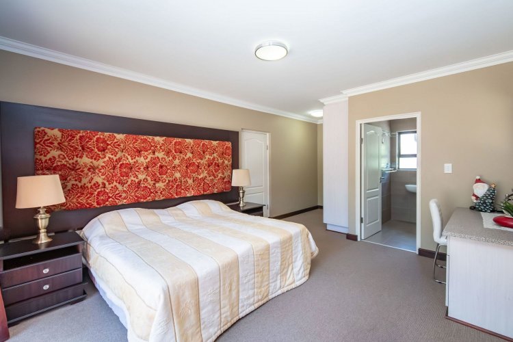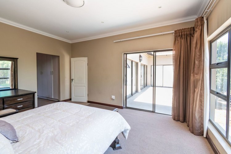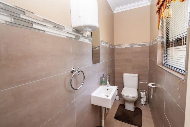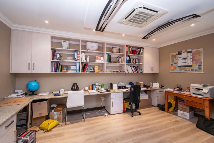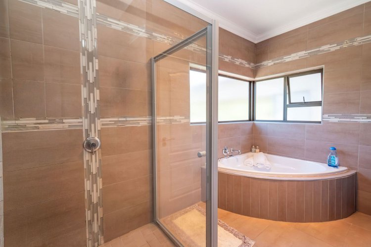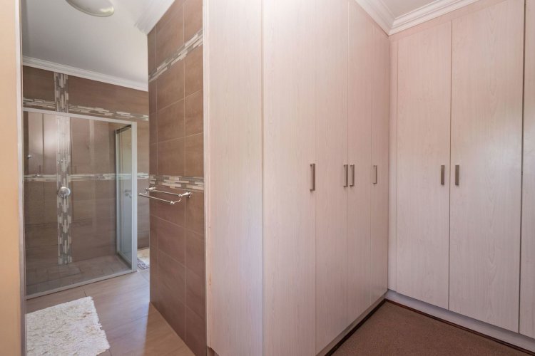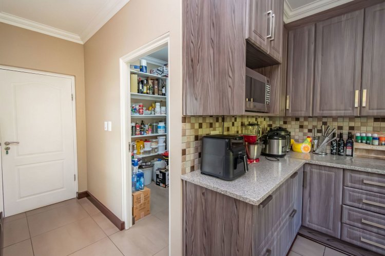Living spaces are beautifully interconnected, with a private study, a formal lounge, a TV room and a dining room all designed around an impressive open-plan layout. An indoor braai area anchors the entertainment space, making gatherings enjoyable throughout the year. The kitchen is supported by both a scullery and a pantry, and a conveniently located guest toilet adds further practicality and an adjoining gym area that enhances the home's relaxed, family-friendly atmosphere..
