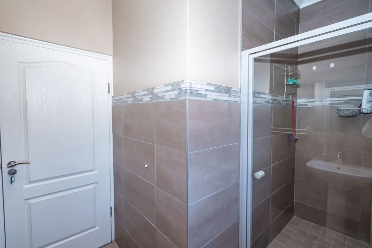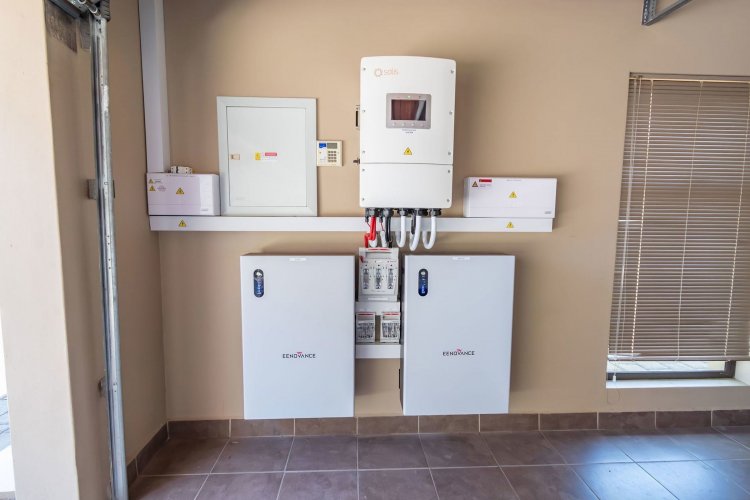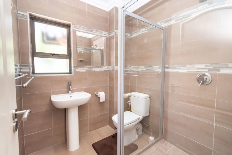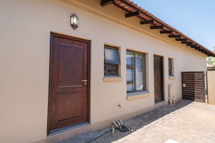 Three spacious garages provide ample parking and storage. Outside, the property includes a domestic room with its own shower and toilet, offering convenience for live-in staff. A large solar system significantly reduces reliance on the grid, ensuring near self-sufficient living. The backyard is currently being transformed with new stone paving and a lush garden in progress, promising a beautiful outdoor space once complete.