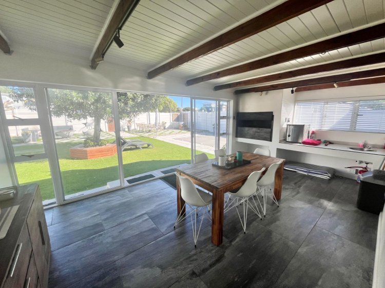 Recently renovated this lovely holiday home is located in the older part of Yzerfontein . A home designed for entertaining with spacious living areas ,open plan kitchen and adjacent braai room opening onto the private outdoor space with a sparkling swimming pool, wood-fired hotpot, braai boma and playground . Four double bedrooms and three bathrooms , main ensuite, have options for accommodating holiday rentals or extended family gatherings. The extra large double garage has direct access to the house and sliding doors which open onto the garden and pool area and doubles as a play area. Many extras such as air conditioning in 3 bedrooms , underfloor heating , heated towels rails, CCTV cameras, electric fencing , clear bars, blinds and water tanks . The property earns an income from holiday letting as Yzerfontein's proximity to the city lends itself to a weekend breakaway destination .