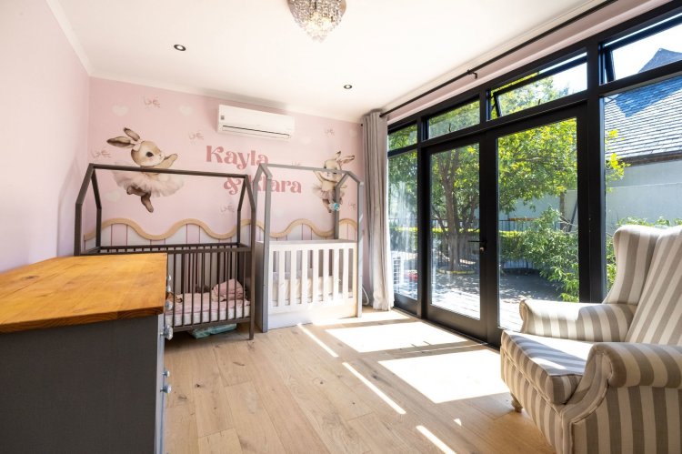 Additional features include a well-appointed kitchen with separate scullery, double garage with ample off-street parking, wood flooring throughout the living areas, air-conditioning, a backup inverter system, and both indoor and outdoor braai areas.
