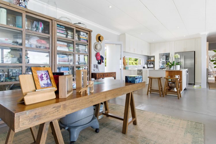 The open-plan kitchen and living space is nothing short of spectacular. Fitted with premium Smeg appliances, the kitchen exudes luxury while remaining warm and inviting — a perfect balance of style and functionality. Flowing effortlessly into the dining and lounge areas, this generous space has been cleverly designed to accommodate a study area within the living environment. Whether working or unwinding, you never have to leave the view. It is a seamless integration of productivity, dining and relaxation — all anchored by that breathtaking ocean backdrop.