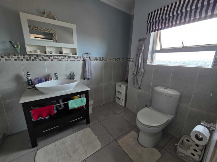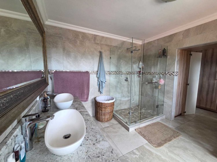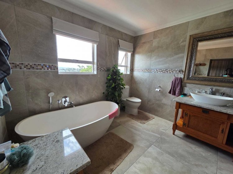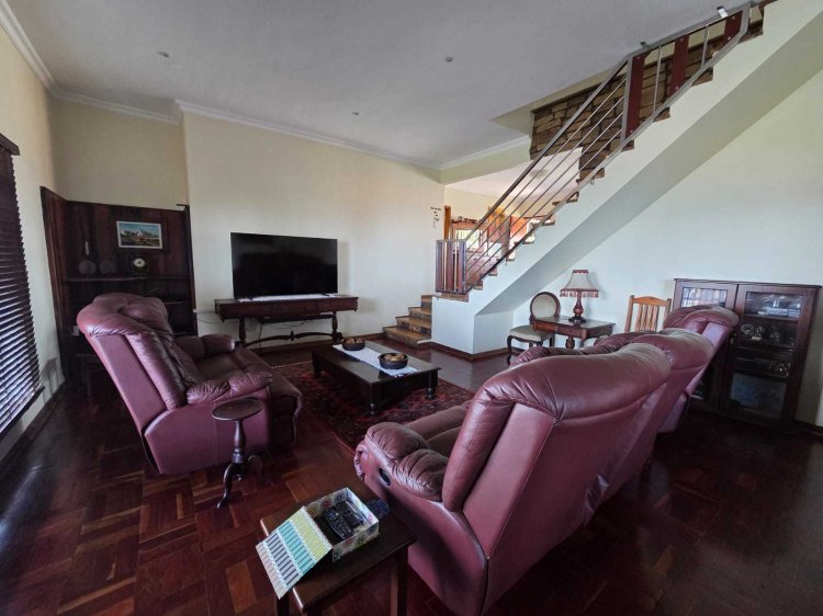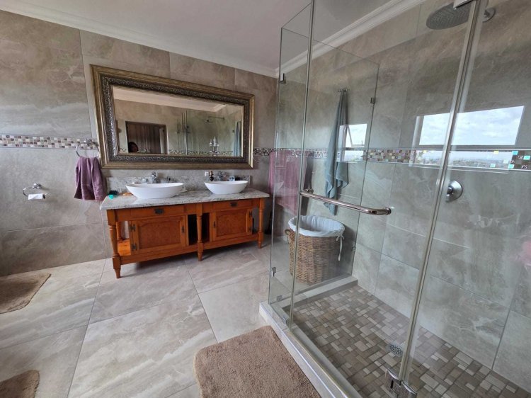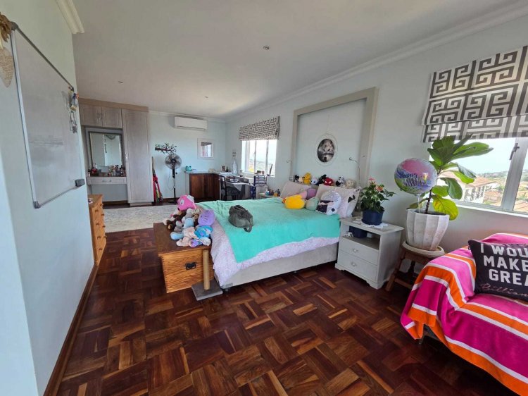 The ground floor is designed for seamless living and effortless entertaining. An expansive open plan layout creates a sense of airy freedom, flowing naturally toward the outdoor oasis. Whether you hosting a summer braai or a quiet family dinner, the backdrop is always perfection. The home features a fully fitted kitchen with a dedicated scullery perfect for the home chef.. Three downstairs bedrooms are serviced by a pristine shared bathroom. Step out into manicured, lush gardens and a sparkling blue pool- your private resort for those walm coastal days.