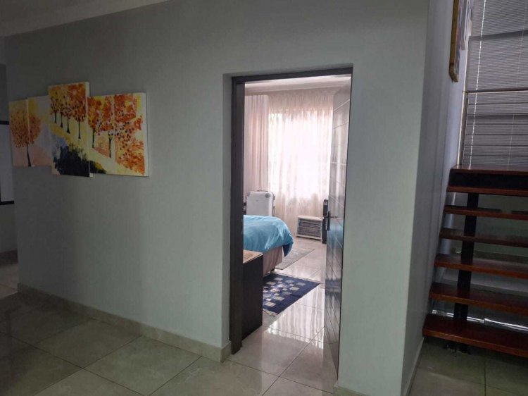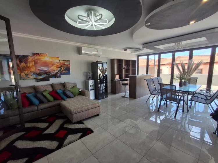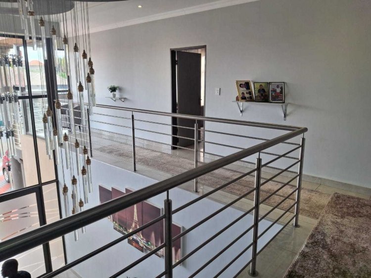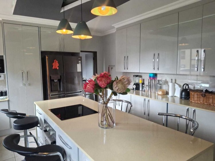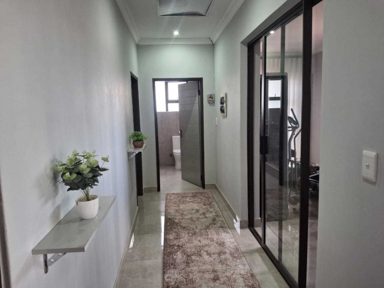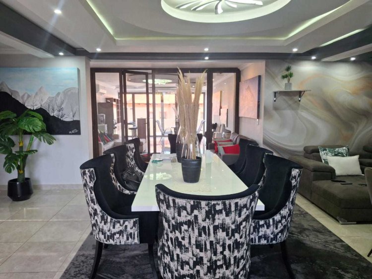 The entrance flows seamlessly into a stunning open-plan dining area and an expansive TV lounge, ideal for both relaxed family living and stylish entertaining. A well-positioned guest bedroom and guest toilet add convenience, while the elegant kitchen, complete with a scullery, blends functionality with timeless design.