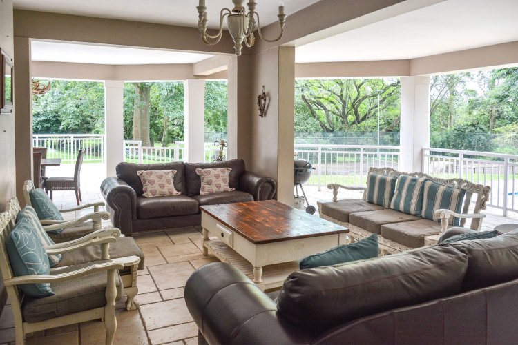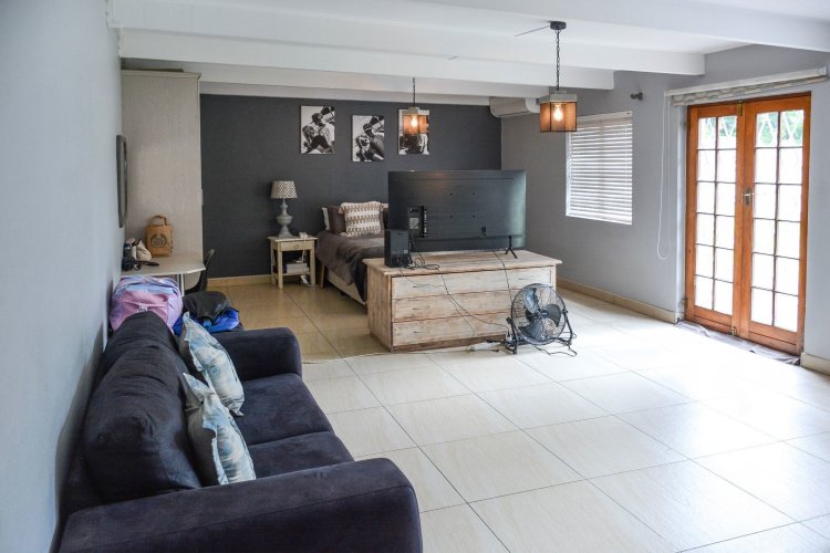 An open plan modern flatlet with lounge, kitchen, and bedroom with separate bathroom. Perfect for guests, extended family, or additional rental income. Additional outbuildings include 4 bedroom, 2-bathroom staff quarters, laundry, and two storage rooms.