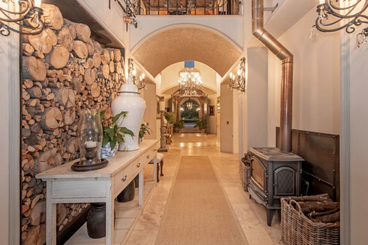The ±1,500m² main residence houses six en-suite bedrooms within walls that breathe luxury. Multiple fireplaces, underfloor heating, and air conditioning ensure comfort across seasons, while the chef's kitchen, equipped with commercial-grade appliances, serves a light-filled conservatory that seats ±60. Here, the pizza oven and rotisserie turn dinner into theatre.