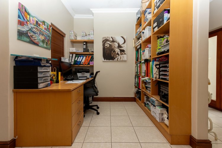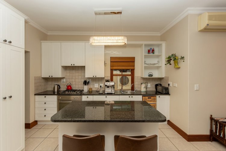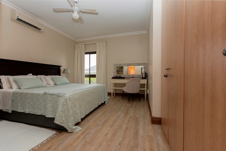 In addition to the main home, a fully self-contained secondary living quarters provides ideal accommodation for extended family or guests, offering true dual-living potential. This private wing features its own master bedroom with en-suite bathroom, a fully equipped kitchen, a separate scullery, and patio access. Throughout the home, abundant cupboard space and air conditioning in all rooms ensure year-round comfort and practicality.