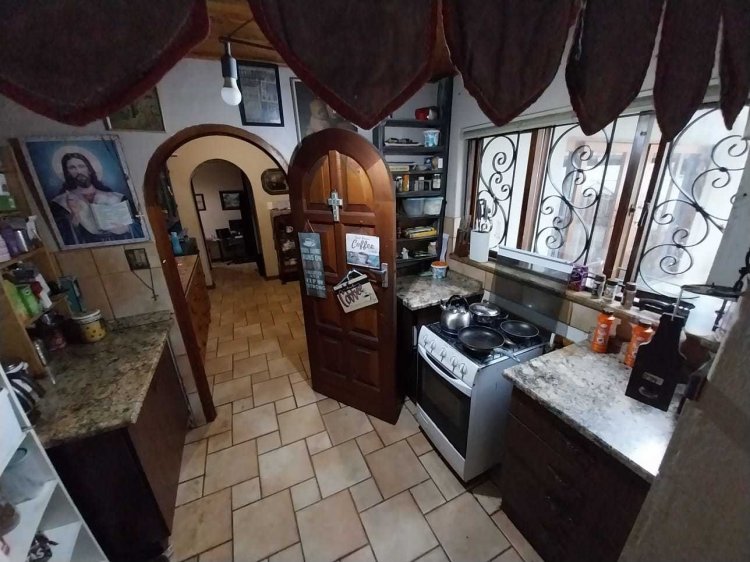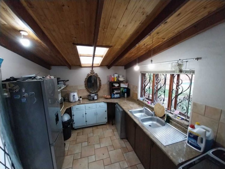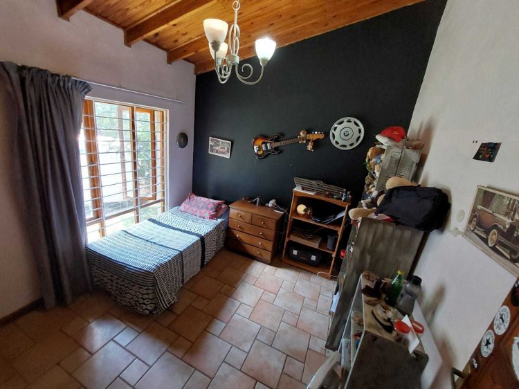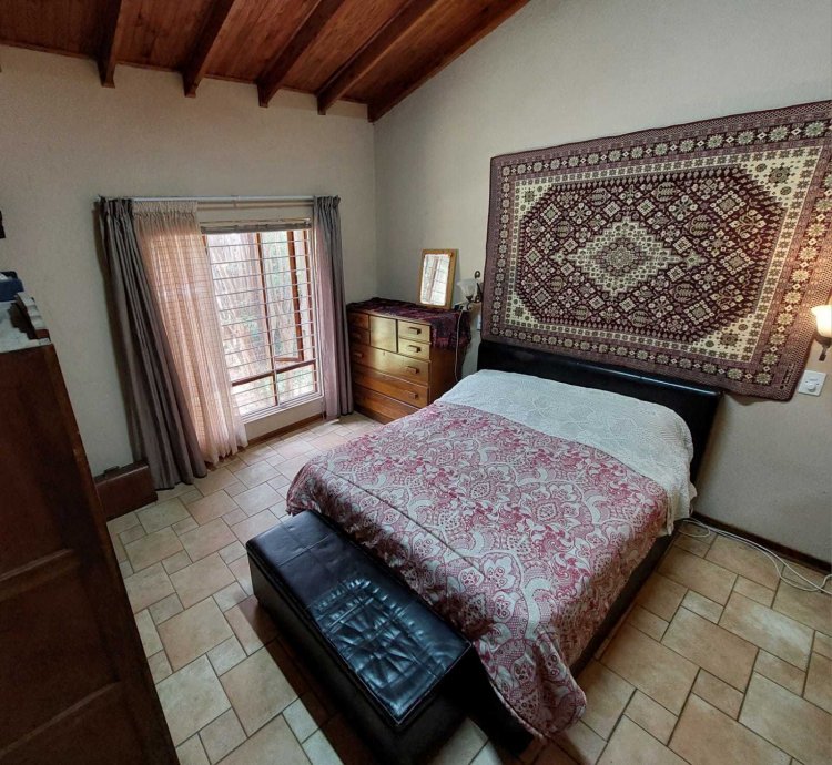 There is a double automated garage in front of this homestead and a cosy flatlet with lots of cupboards and what is needed to be called a home. The main house has 5 bedrooms and 2 bathrooms, a large dining and a lounge with a fireplace. There is a large loft area on the upper level with a private patio to relax. The kitchen is very small with a scullery but there is potential to make some changes and transform this into a loving family home. The yard has two entrances, the second entrance leads to a single garage. There are two more storage rooms at the back and a large private swimming pool to cool off during the hot summer months. Last but not least there is a large Lapa with a braai and a pizza oven to entertain your guests with some Italian food while relaxing at the pool or under the Lapa. Once you see the potential of this house in this sought after area you will not hesitate to make an offer