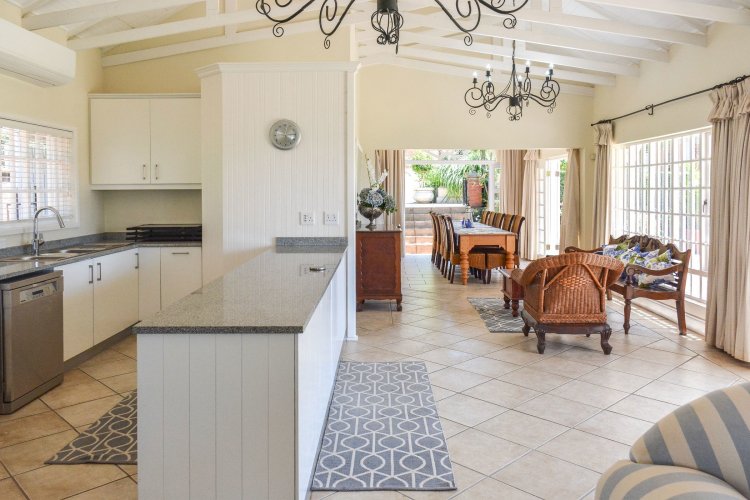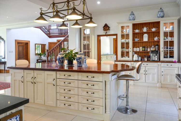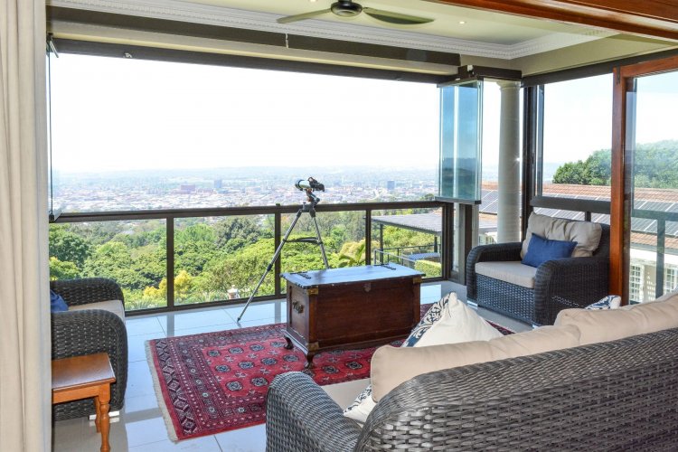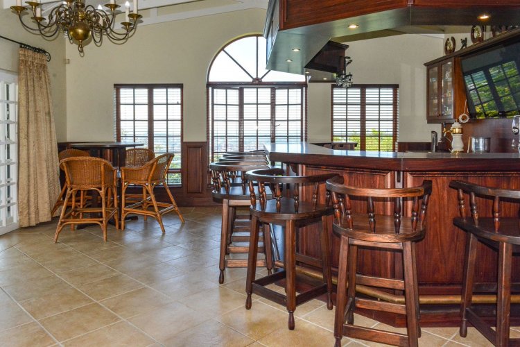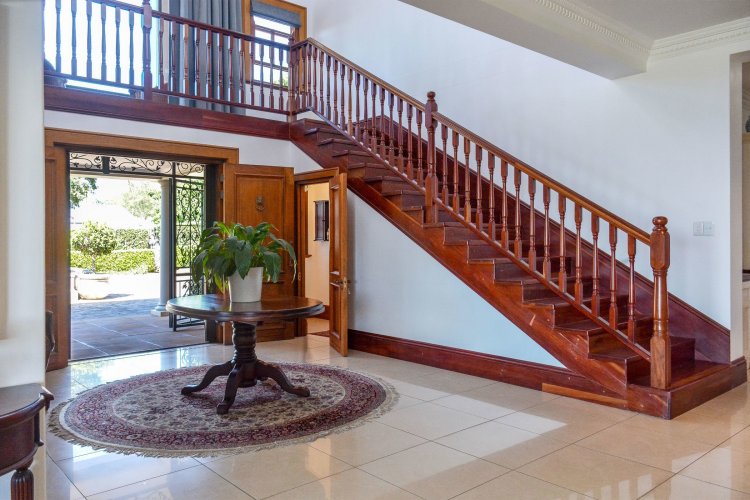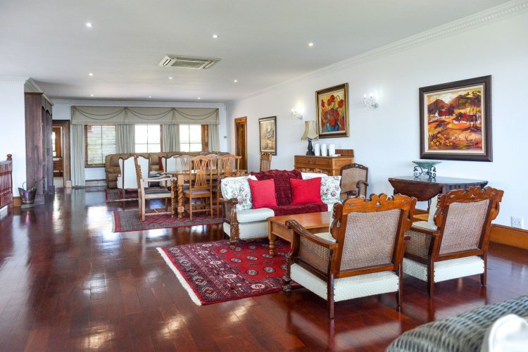 The main home is absolutely stunning with great attention to detail. Open plan living areas that flow with ease. The Rhodesian teak staircase leads to the bedroom section and a large living area and covered balcony. The views and the lights at night are magnificent. As are the Chandeliers throughout.