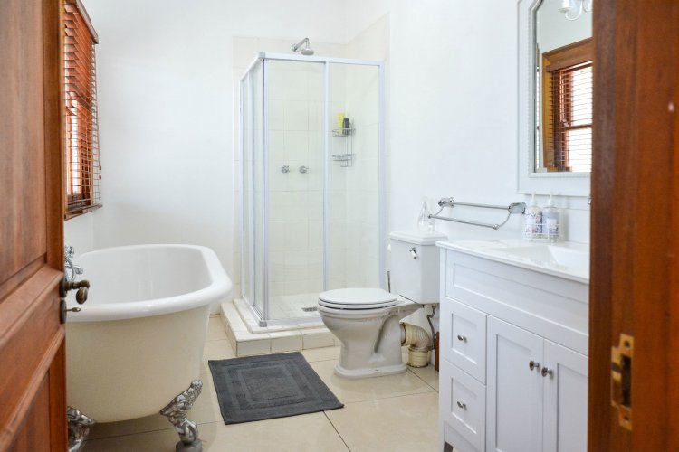 The modern private 2 bedroom, 2 bathroom flat offers spacious open plan living area and fitted kitchen. A large Sunroom leads out onto a deck with stunning views. There is also a braai area and outside laundry.