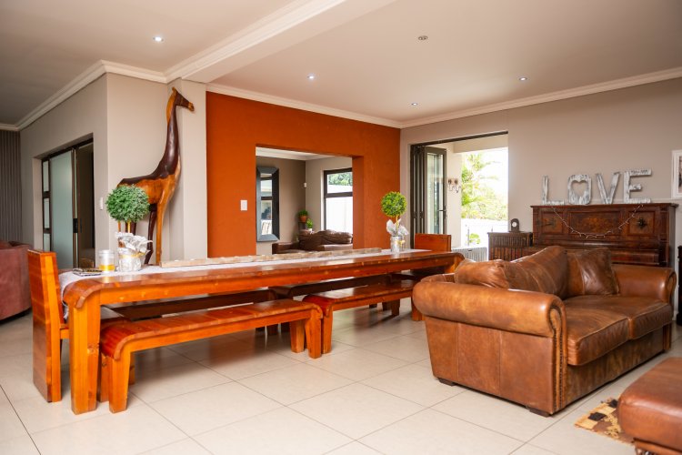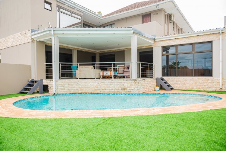 Set in a position of unbridled majesty above the glimmering Nahoon River, this four-storey architectural tour de force is a world unto itself, suspended in perfect harmony between the verdant hillside and the boundless horizon. From the very moment of arrival, the home ascends with unwavering confidence, each successive level unveiling a fresh perspective, a new tableau of vistas, and a renewed sense of coastal enchantment. Within this sublime edifice, the main residence boasts four exquisitely appointed ensuite bedrooms, each conceived as a peaceful sanctuary, meticulously crafted to provide a tranquil retreat from the world. As one ventures beyond these private domains, the home unfolds into a beguiling sequence of living areas, each imbued with its own distinct personality and rhythm, awaiting only the touch of human presence to spring to life. A sumptuous cinematic TV room, a flowing open-plan lounge, a hushed quiet lounge, and a second-floor lounge that appears to float above the river views – every space is a masterclass in bespoke design, redolent with promise and possibility. Two fully equipped kitchens form the heart of the home's hospitality, ably supported by two elegant dining rooms that invest even the most mundane evenings with an air of celebratory splendor. And then, the revelry commences. An entertainment and games room, dedicated to unadulterated pleasure, awaits within, replete with darts, pool table, and table tennis – a joyful arena that mocks the very notion of a rainy day. Yet, the house resolutely refuses to contain the merriment. Sweeping doors glide open, seamlessly merging the living area with an extraordinary outdoor entertainment domain, where a crystal-clear pool shimmers like a swathe of azure silk, ringed by a braai area, fire pit, and generous expanses of space for lounging, dining, and nocturnal tale-sharing. This is an alfresco setup that transmutes humdrum weekends into protracted, sybaritic memories. The rooftop, a lauded eyrie, commands a peerless dominion over the sky. The river meanders below, the dunes radiate a warm glow, and the coastline stretches forth in serene self-assurance. Sunrise, sunset, stargazing – the rooftop is a private observatory, where the celestial ballet unfolds in solitary splendor. A guesthouse of uncommon charm and functionality completes this resplendent property, its four self-contained units – including a full-family unit with its own kitchen and dining area, plus three units with mini open-plan kitchens – creating a haven for guests, extended family, or discerning rental investment. This is no mere accommodation; it is an invitation to independence, seclusion, and an elevated experience that mirrors the rarefied luxury of the main home. Practical considerations are not neglected, with a double extra-length garage providing ample space for vehicles, gear, storage, and projects, while two built-in storage rooms maintain the home's immaculate order. A covered double carport provides additional secure parking for guests or family. Positioned at the very heart of Nahoon Beach, one of East London's most cherished locales, this property is a synecdoche of riverside serenity, coastal energy, and superlative convenience, distilled into a single, extraordinary setting. This is more than a home; it is a four-level bastion of lifestyle excellence, conceived for the individual who desires space, elevation, vistas, and a life that feels like an uninterrupted holiday!