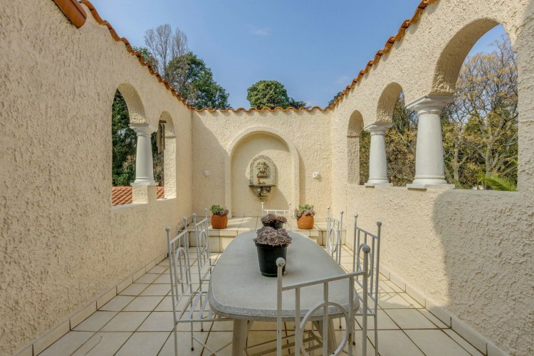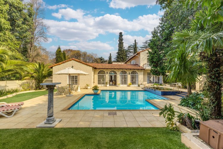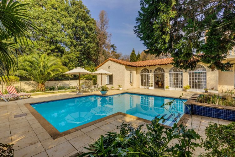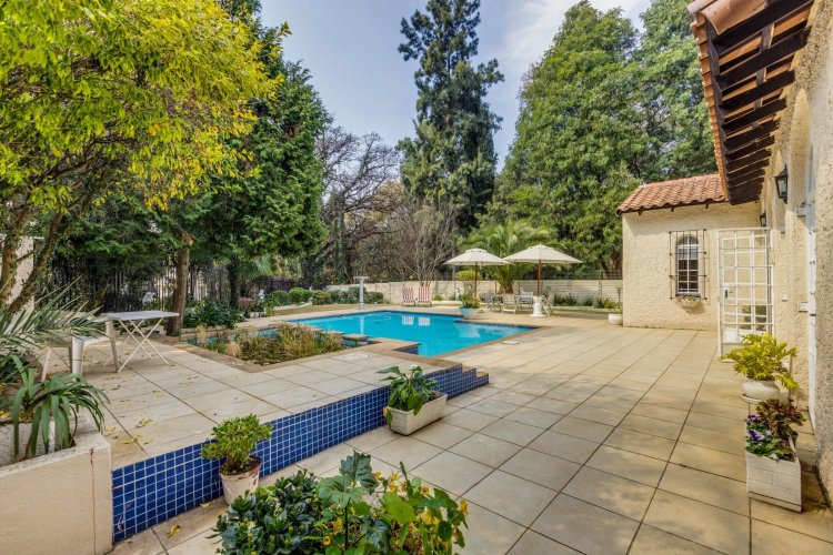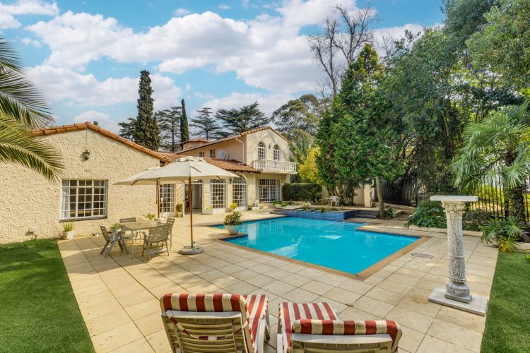 Land size: 2262 sqm, 833 sqm under roof Welcome to your dream home in a stunning Houghton! This property boasts 4 spacious bedrooms plus a study, and 2 luxurious bathrooms, providing ample space for family and guests. Entertain in style in the formal lounge with gas heater and dining room or gather in the large kitchen with gas stove and an eat-in area, perfect for casual family meals. Enjoy alfresco dinner evenings in the expansive family room overlooking the pool, and courtyard. Step outside to discover your own private paradise, featuring a pool surrounded by a beautifully landscaped garden, ideal for summer fun and outdoor gatherings. For added convenience, a large cottage with own private entrance and double garage awaits, offering a cozy sitting area, one bedroom, a bathroom, and a kitchen—perfect for guests or work from home or rental options. This exceptional property also includes 3 garages for secure parking and four staff rooms, a bathroom, and a kitchen, making it versatile enough to suit your needs. Don't miss the opportunity to own this remarkable home—where luxury meets tranquility in the heart of a vibrant community!