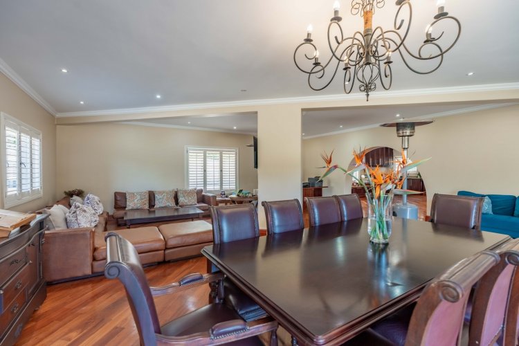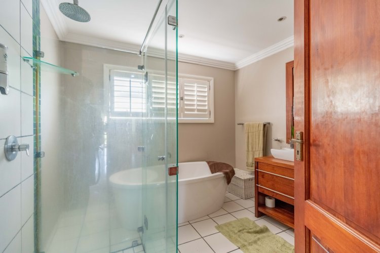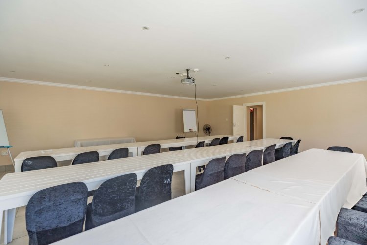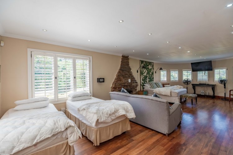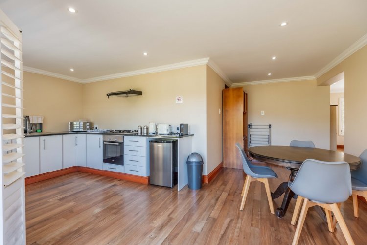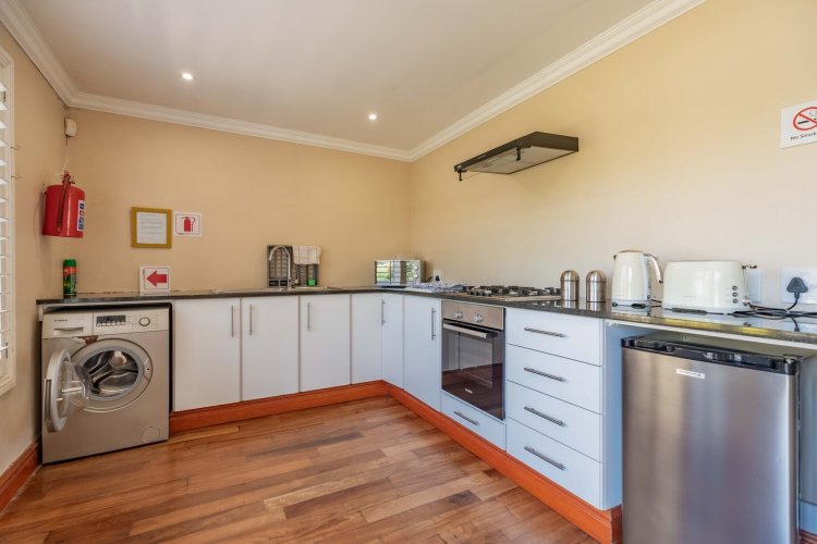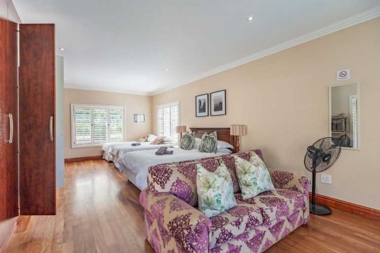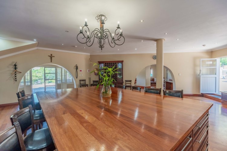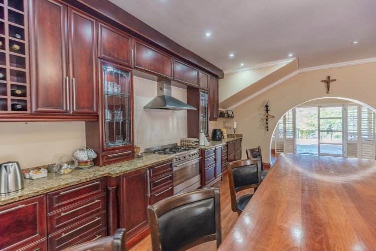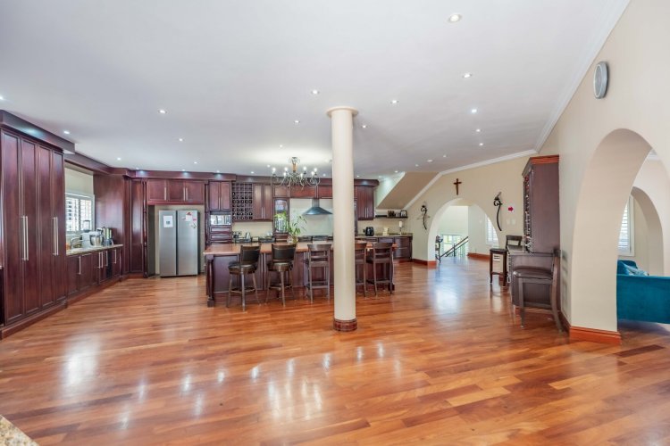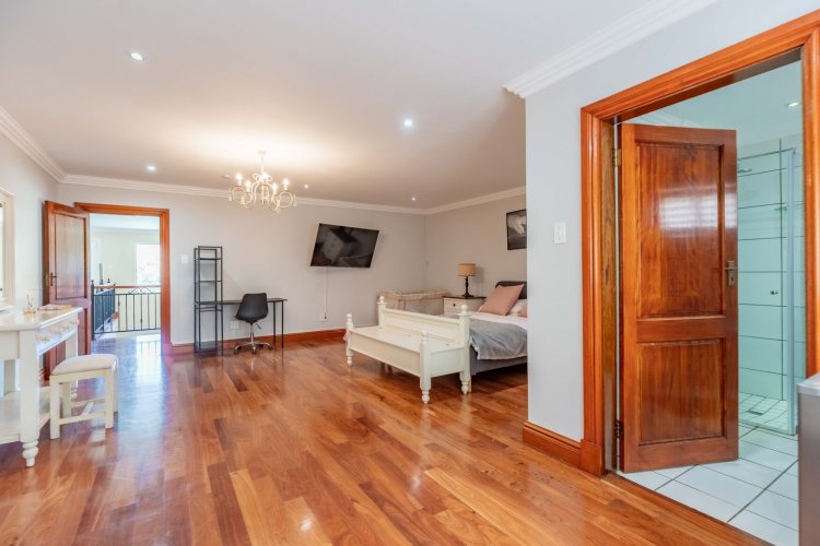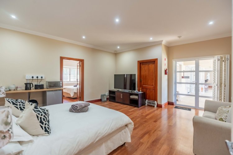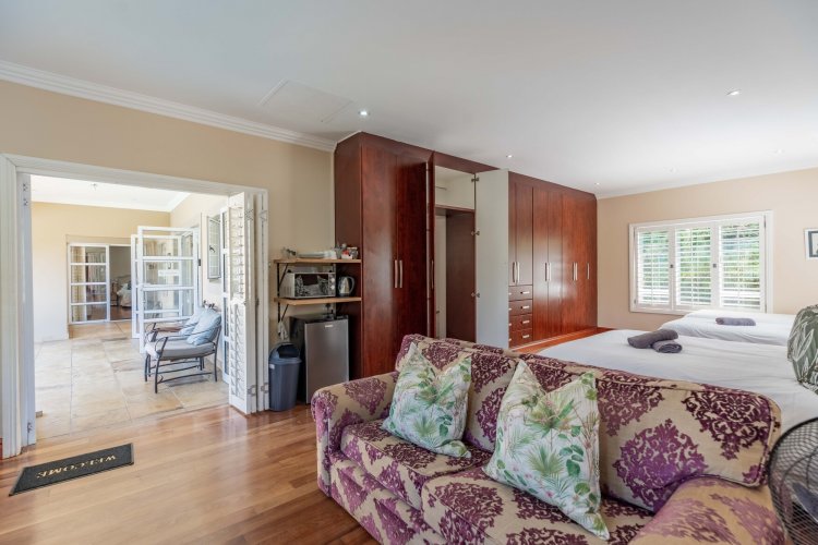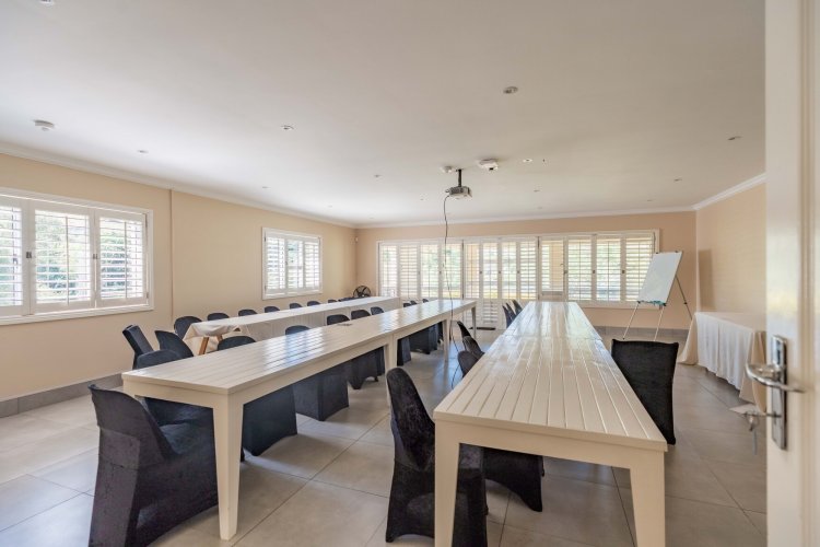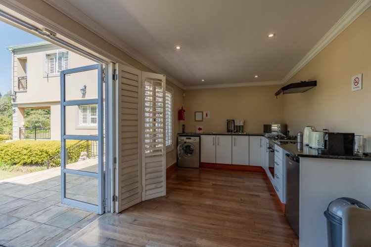 Reminiscent of the Oyster Box Hotel, this boutique manor includes a snooker room, conference centre, a sparkling blue swimming pool with Beverly Hills-styled loungers and umbrellas, a tennis court, and sweeping lawns ideal for croquet or other guest entertainment. At its heart lies an exceptional solid wood kitchen with granite tops, well-equipped to support a gourmet menu for luncheon patrons or hotel guests.