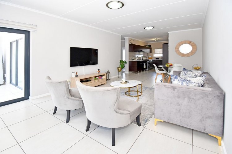 This well-maintained, owner-occupied apartment offers two bedrooms and two bathrooms (including a main en suite and a full shared bathroom), complemented by a bright lounge that opens onto a north-facing balcony with ample space for outdoor dining. The contemporary kitchen features built-in cabinetry, stone countertops, a gas hob with an electric oven, and space for under-counter appliances. Offering abundant natural light throughout, the home includes two dedicated carport parking bays, pre-paid electricity, and post-paid water, providing a comfortable and convenient living environment. Greenstone Ridge features: a lifestyle centre with restaurant, Camelot spa, lounges, swimming pools and games room. A gym, squash court and soccer pitch.