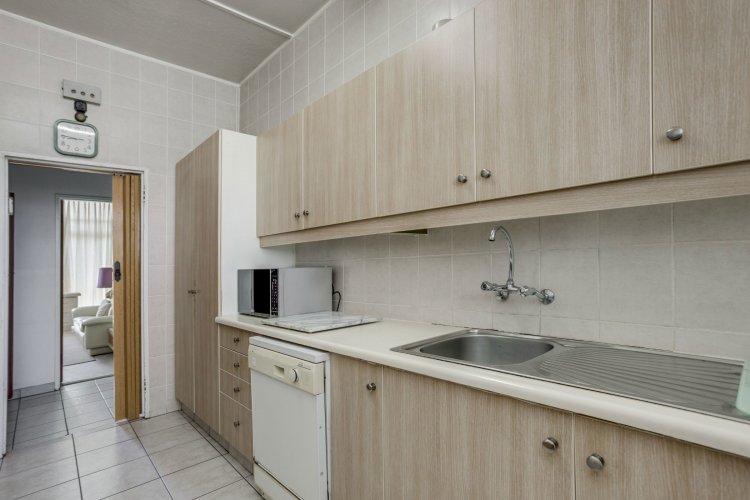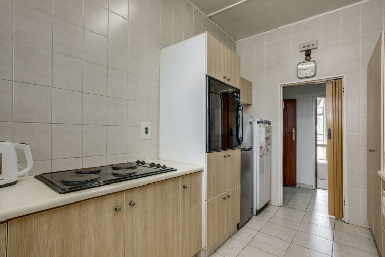The streamlined kitchen, accessed separately, balances function and finesse, a space designed for everyday ease.