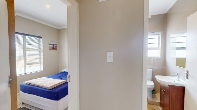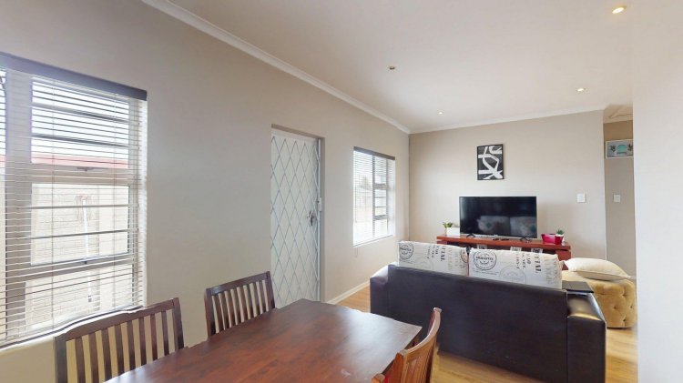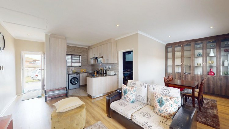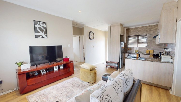 The home offers two spacious double bedrooms with built-in cupboards and aluminium windows. A modern open-plan kitchen with granite counter tops and melamine cupboards forms a standout feature of the unit. The neat and cozy lounge and dining area flow seamlessly and lead out to a small private courtyard, perfect for laundry and refuse convenience.