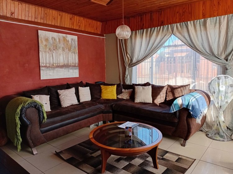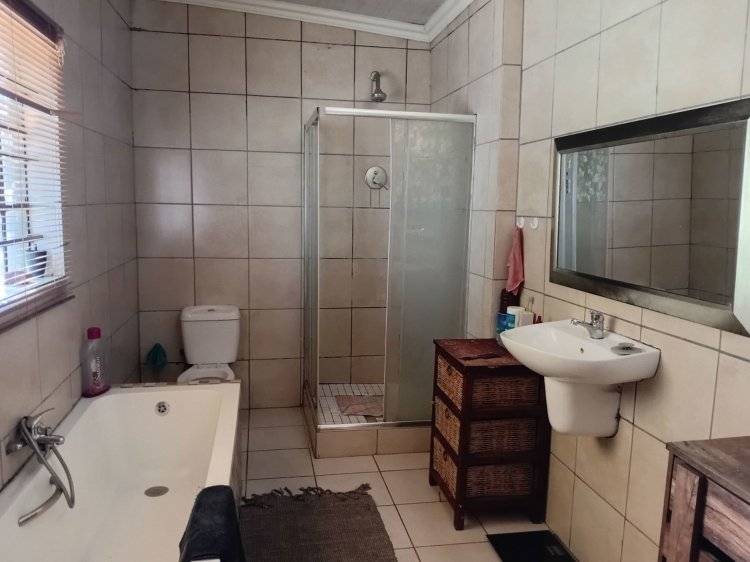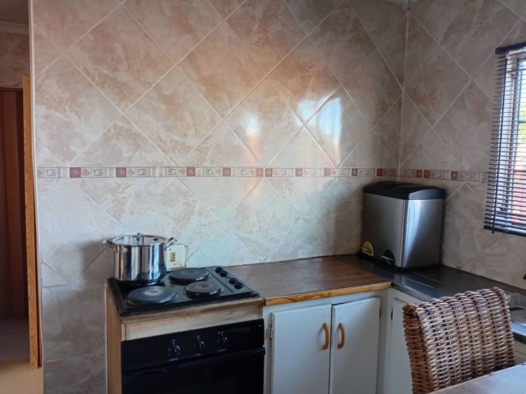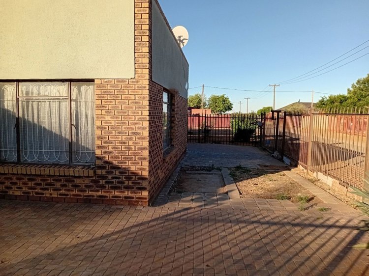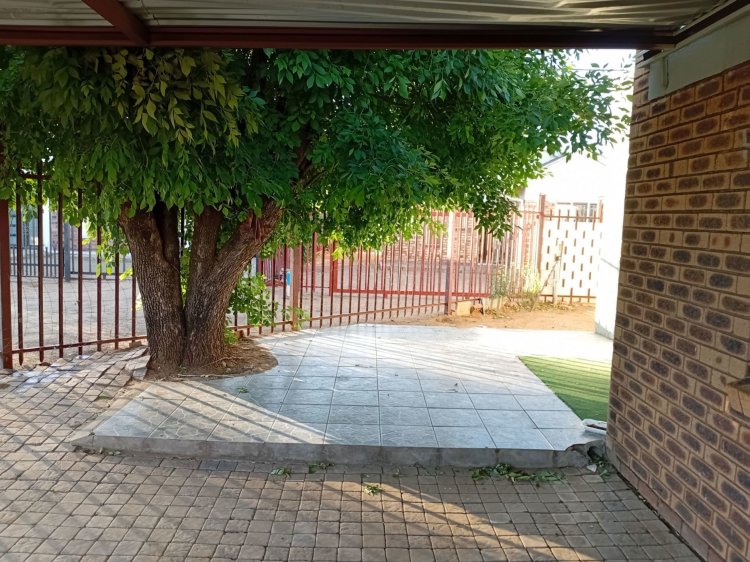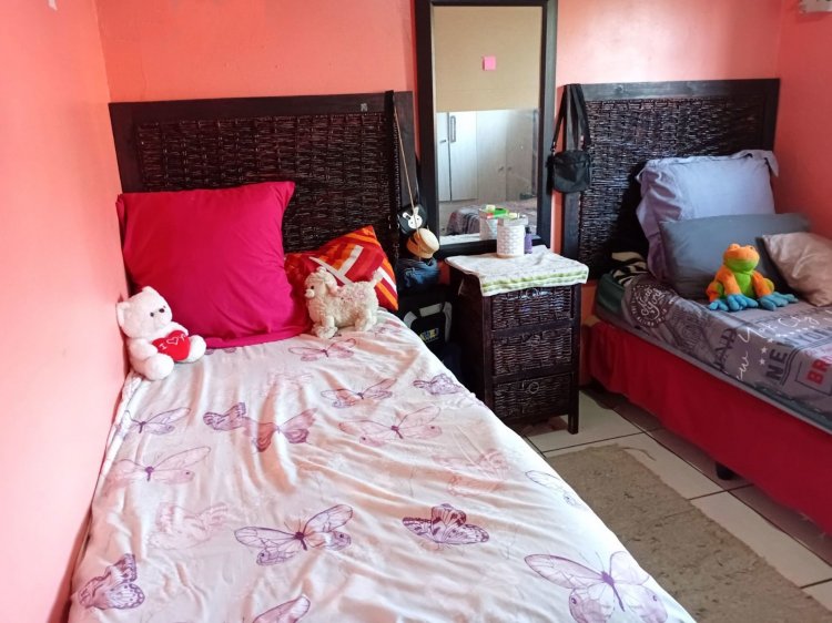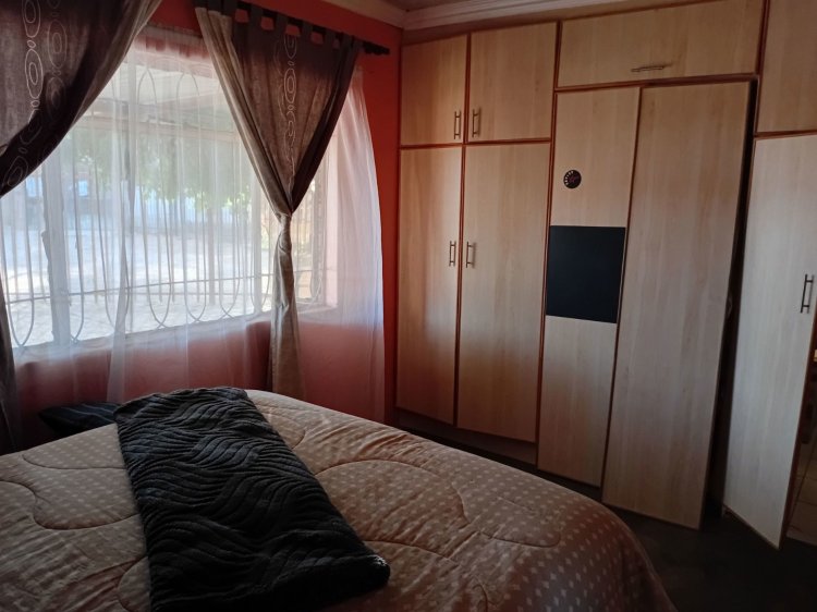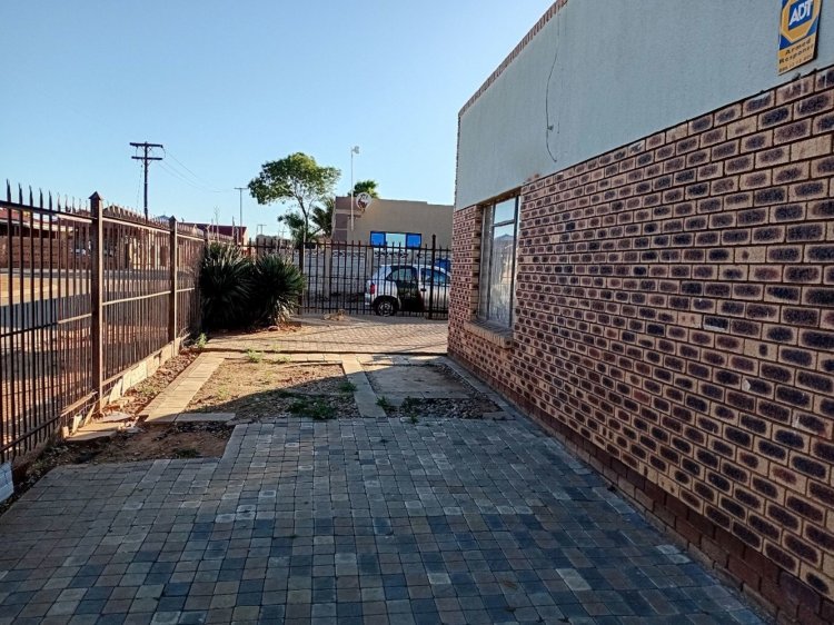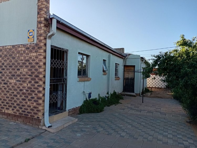 This lovely 2-bedroom home in Bloemside offers comfort and convenience, with an additional exterior room perfect for guests or extra income potential. The main bedroom features a full en-suite bathroom and built-in cupboards. The property includes a modern kitchen and dining area, ideal for family living. The paved yard is neatly maintained, with two access gates, a carport that fits one car, and additional parking space for up to three cars in front and two at the back.