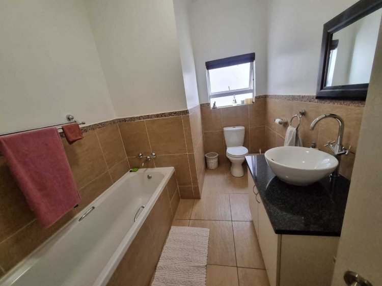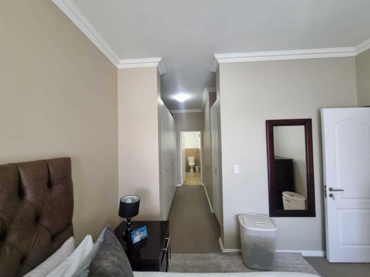 This large 3 bedroom first floor unit has a lot to offer. Comprising of 3 bedrooms, 2.5 bathrooms (m.e.s & guest toilet), An open plan dining and lounge area leading onto the spacious covered balcony, equipped with built-in braai, with views over Thorn Valley Estate. The kitchen is neat with space for two under counter appliances. Additionally, the unit has: single lockup garage and single parking space, storeroom, prepaid electricity, fibre infrastructure, move-in ready. Portland Place features: children's play area, indoor swimming pool and club house while the estate comprises immaculate gardens and walkways, ponds, another children's play area and controlled access