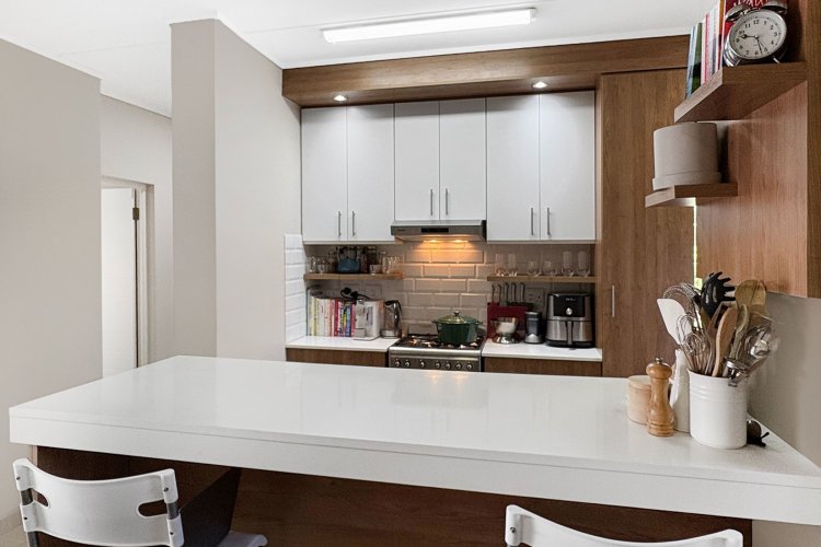 A recent enhancement to the kitchen is the elegant raised counter, which not only adds aesthetic appeal but also increases seating capacity, further enhancing the practicality of the space.