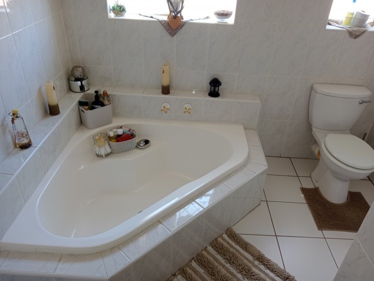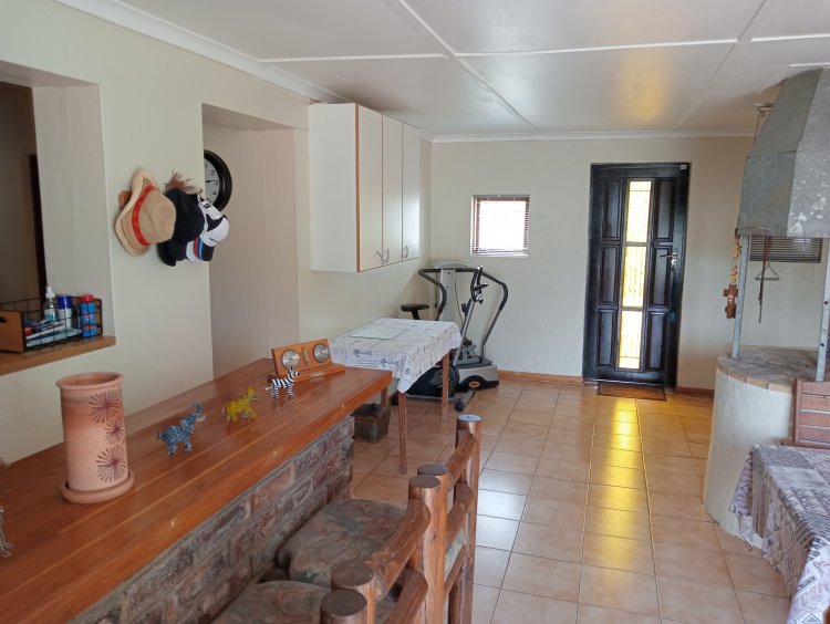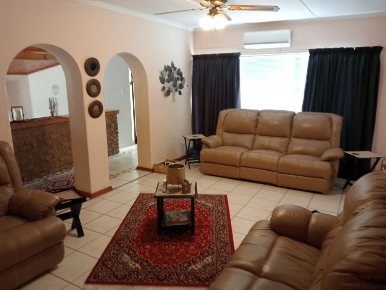 Property Features: Fully enclosed with a double remote front gate 3 garages (double (on remote) + single.) & paved driveway Formal lounge with sliding door to the pool & study with built-in cupboards TV room with built-in cupboards, ceiling fan & open-plan dining area Well-equipped kitchen with built-in cupboards, electric stove, hob & inverter Inside braai room with bar area, also suitable for a gym 3 spacious bedrooms with built-in cupboards & wooden floors Main bedroom with aircon, ceiling fan & en-suite bathroom Family bathroom with corner bath, basin & toilet Outside features: under-roof braai area, Wendy house, JoJo tank, courtyard & outside toilet