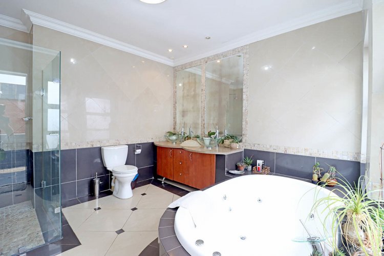 The stunning modern eat-in kitchen is beautifully designed with excellent fittings, making everyday living both convenient and enjoyable. High walling, great security, full staff accommodation, and plentiful off-street parking add to the home’s overall appeal.