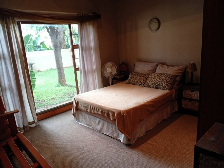 The main bedroom is very spacious with built-in cupboards and a walk-through cupboard leading to the en-suite bathroom.