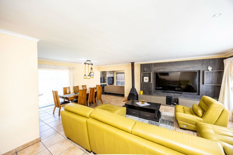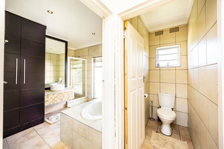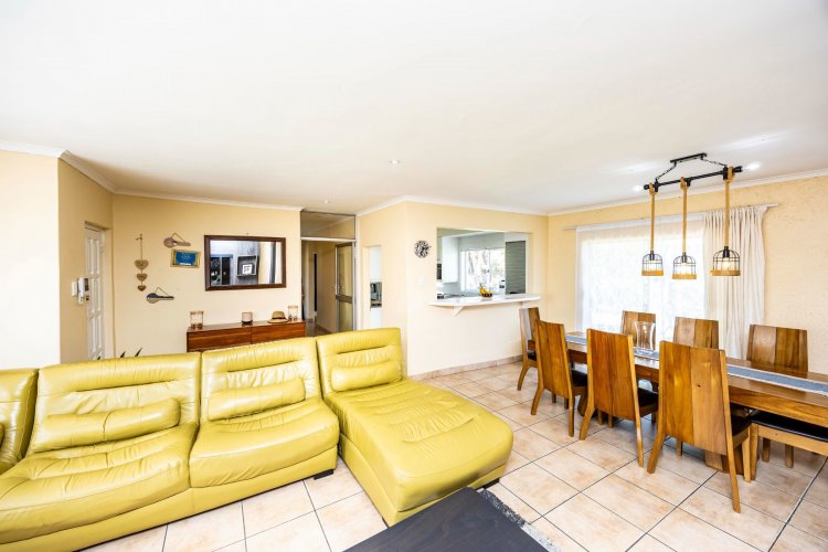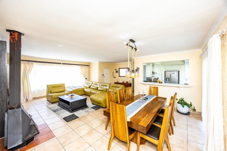 This lovely home will fit a family of entertainers well. With spacious open plan living areas that leads to an entertainment room and opens to the swimming pool, it is ideal for spending quality time with family and friends. The house offers three bedrooms and two bathrooms, one of which is en suite. Extras include a one-bedroom flat, staff accommodation and ample safe parking.
